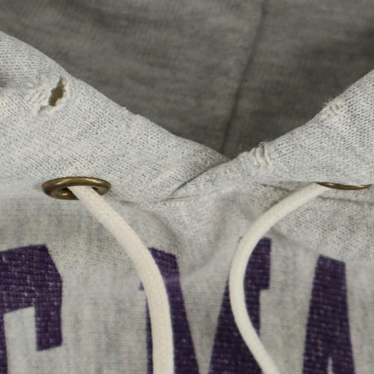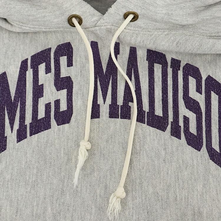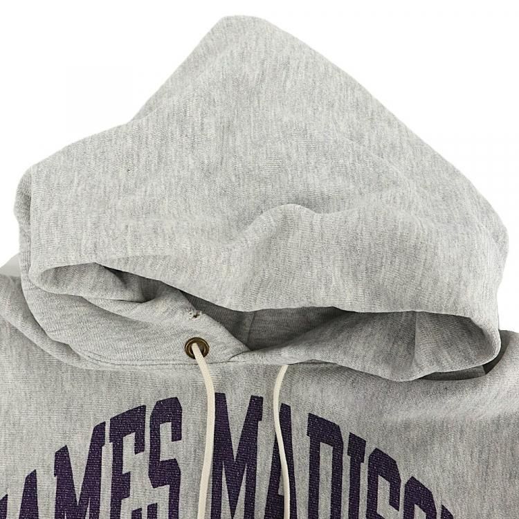 コメント:80年代Champion社製リバースウィーブのスエットフーディーです。 こちらはジェームズ・マディソン大学になりスクールカラーの紫で染込みプリントされています。 良い配色だと思います。