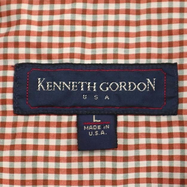 古着 USA製 KENNETH GORDON ケネス ゴードン レッド×グリーン チェック BD ボタンダウン 長袖シャツ / メンズL