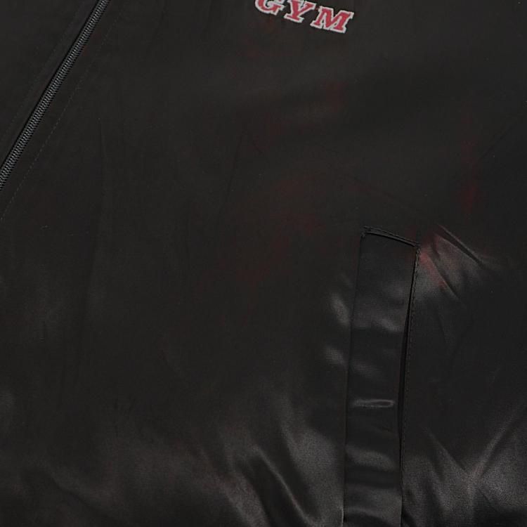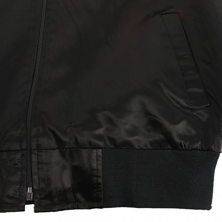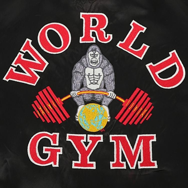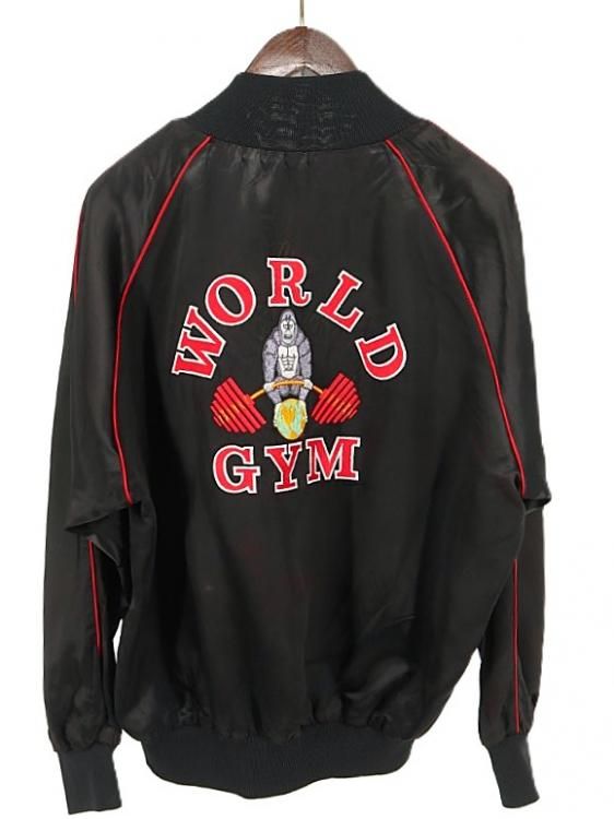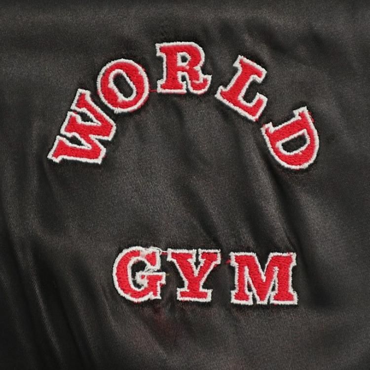古着 80's~90's WORLD GYM ワールドジム レーヨンサテン ロゴマーク刺繍 ブラック リブ ベースボールジャケット / メンズXL