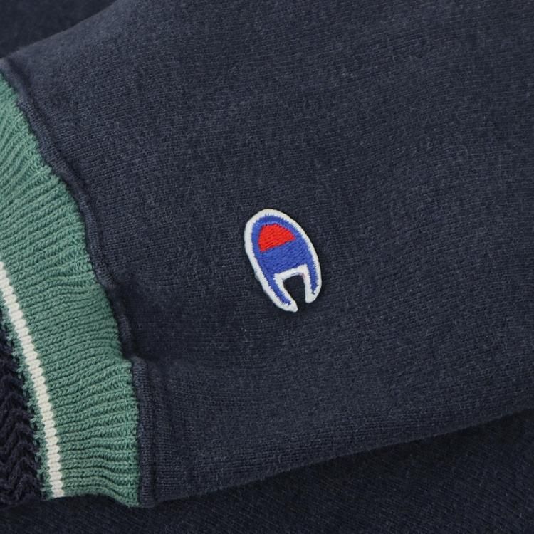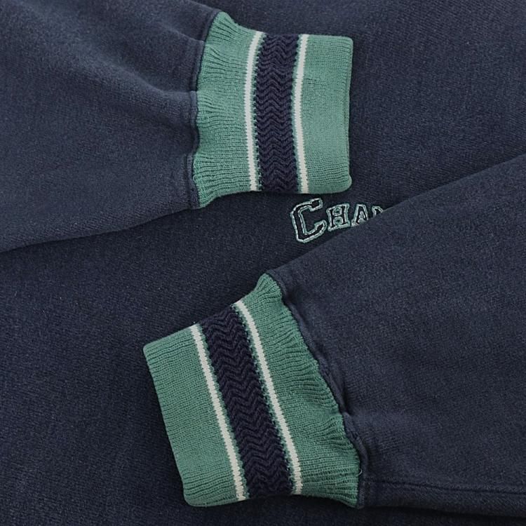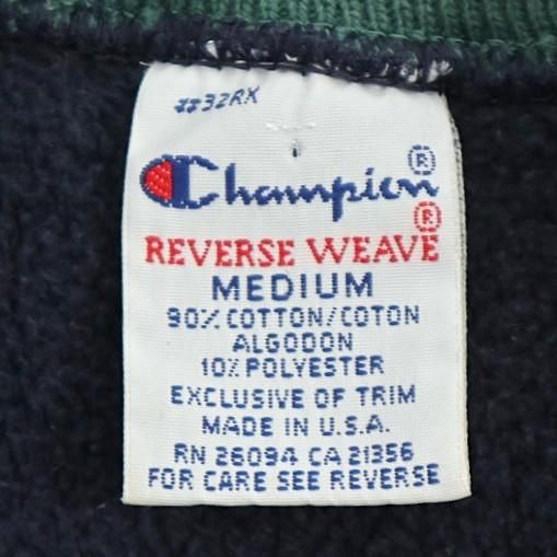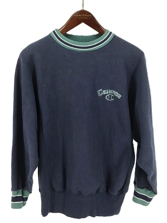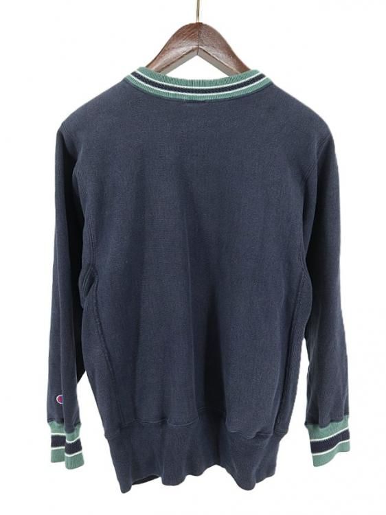 古着 90’s USA製 Champion チャンピオン 刺繍タグ REVERSE WEAVE 変形リブライン 大文字ロゴ ネイビー スウェットシャツ / メンズM