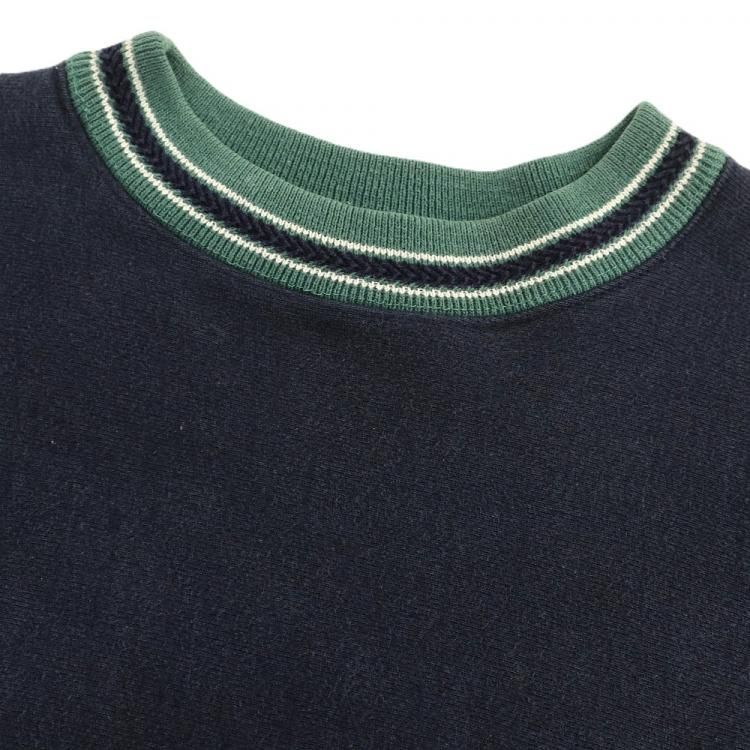 コメント:90年代Champion社製リバースウィーブのスエット トレーナーです。 通常のリブラインと異なり編込みの模様が入りますので立体感があります。 今の所この胸ロゴでしか確認できていませんので、特別仕様なのかも知れません。 通常のリブラインは裾リブにもラインが入り、ネックリブの幅がこちらより狭くなっています。 珍ピオンをお探しの方は選択肢の1つにいかがでしょうか。