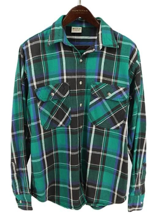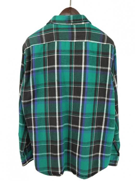 古着 90's FIVE BROTHER ファイブブラザー グリーン×ブラック×ブルー チェック 長袖 フランネルシャツ / メンズL