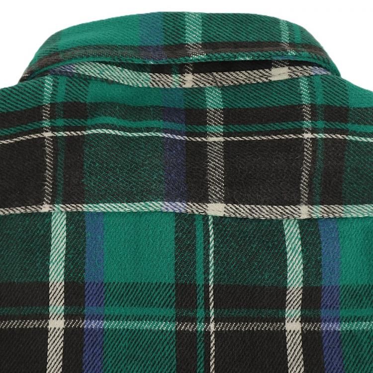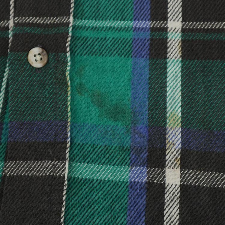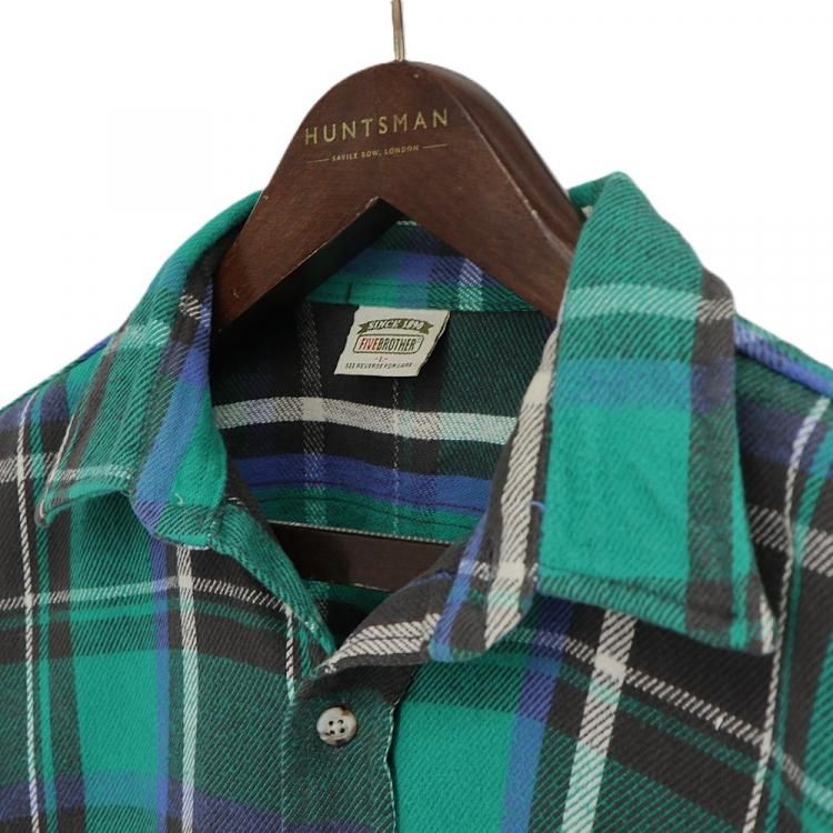 コメント:90年代 FIVE BROTHER の ネルシャツです。 ネルシャツと言えばのファイブブラザー で、老舗のワークウェアブランドですね。 こちらは グリーン×ブラック×ブルーのチェックで、アメカジらしい色合い。 そこにあったから着るみたいなラフに着るのが一番イイと思います。 襟芯入り。