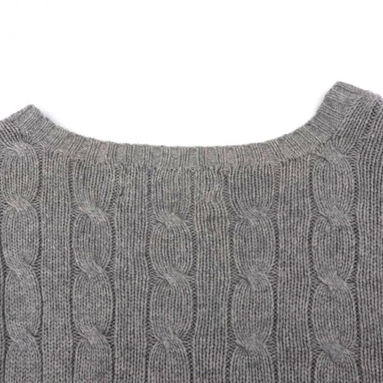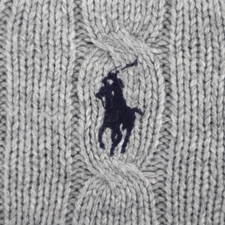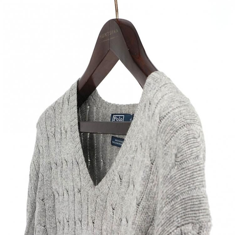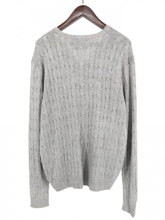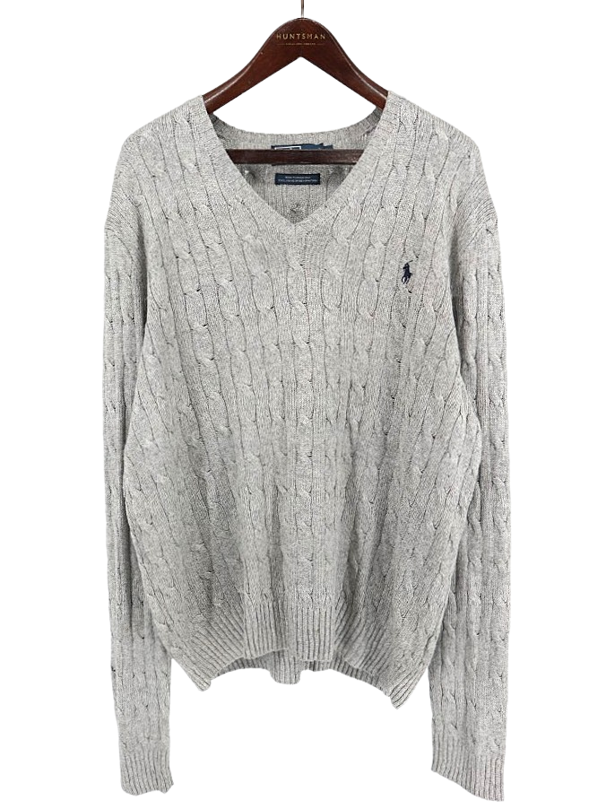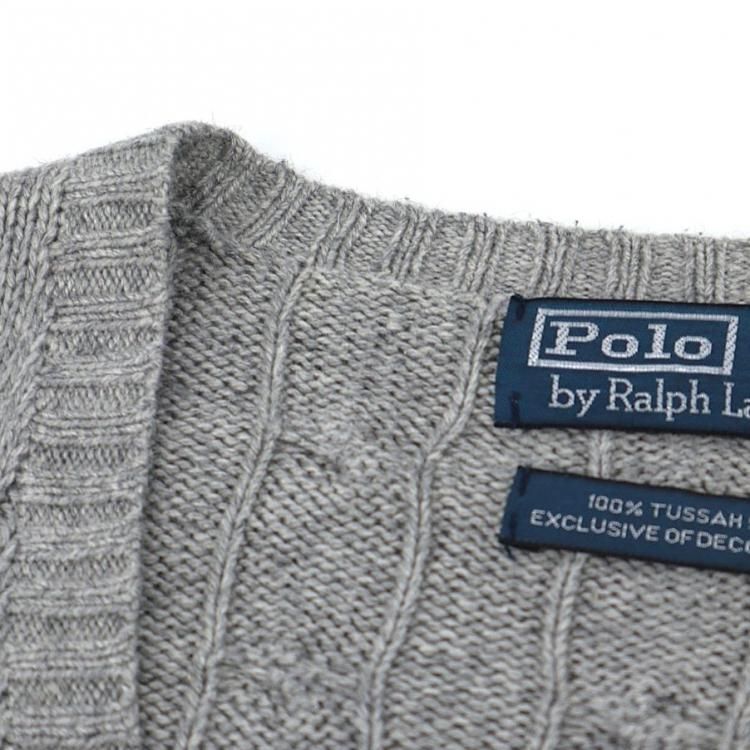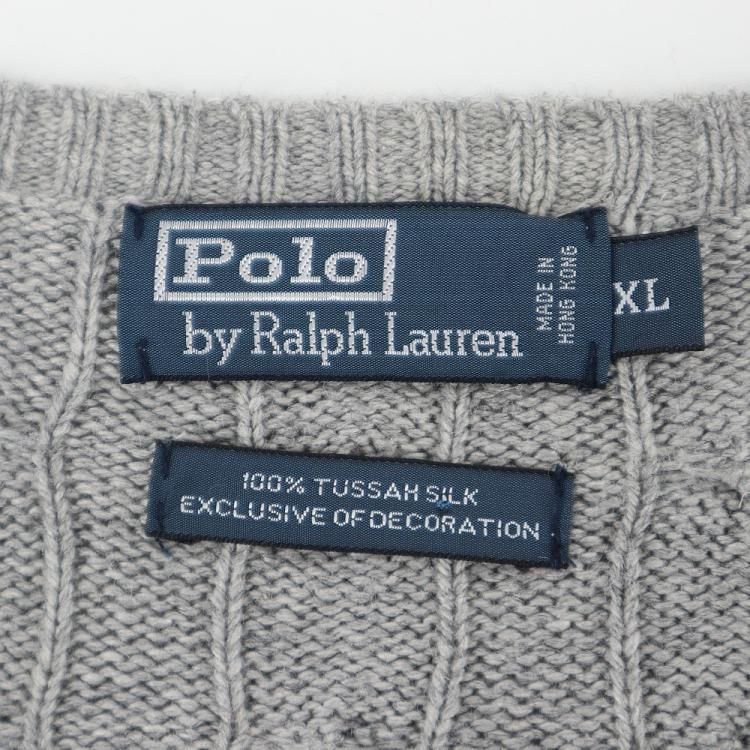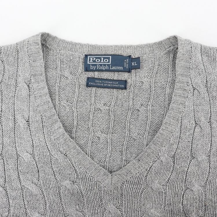 古着 90's POLO by RALPH LAUREN ポロ ラルフローレン シルク100% ケーブル編み グレー Vネック ニットセーター/ メンズXL