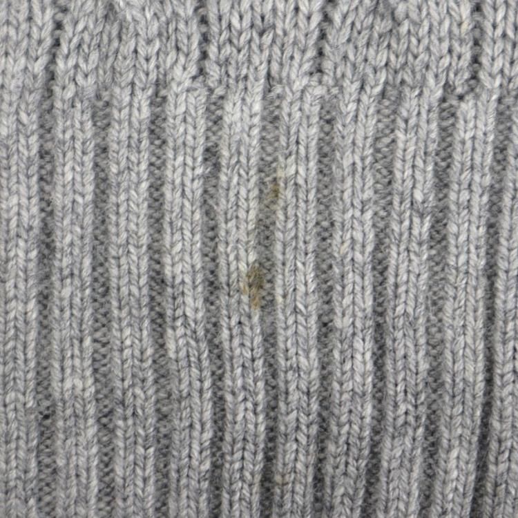 使用感のほか、襟元や袖口周辺に若干のシミがあります。