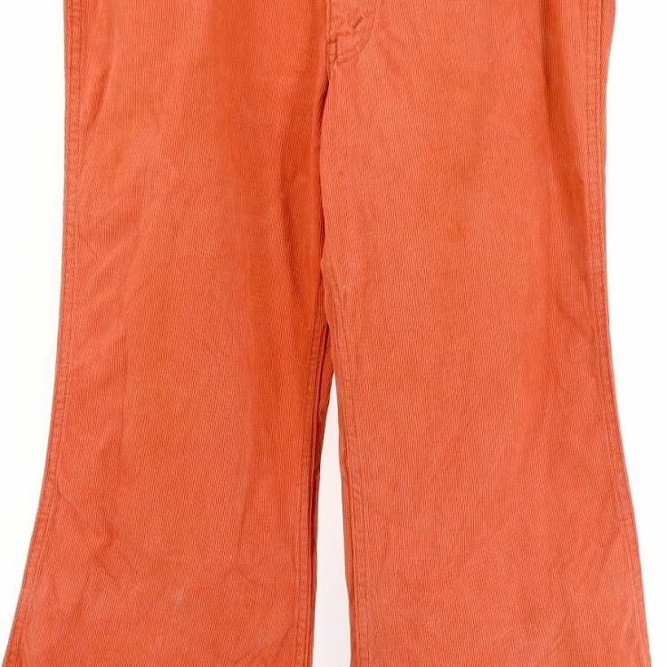 コメント:70~80年代のヴィンテージ Levi's コーデュロイパンツです。 腰ポケットの代わりに両側に大き目のコインポケットが付き、ヒップもパッチポケットではなく片玉縁に変更されたベルボトムパンツです。 ボタン裏28でR白タブ。