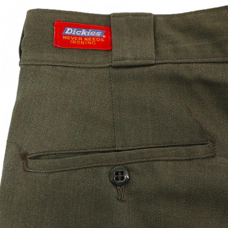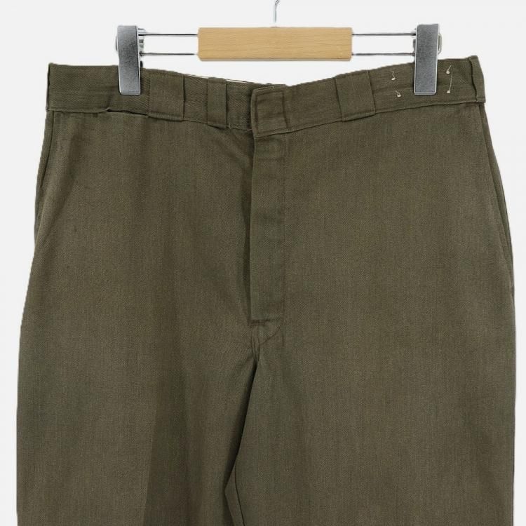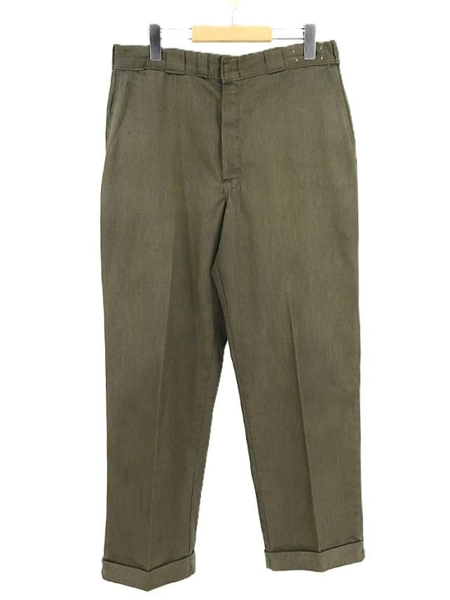 古着 60's ビンテージ Dickies ディッキーズ 赤タグ センター細ベルトループ コインポケット付き オリーブ ワークパンツ / W32 インチ 相当