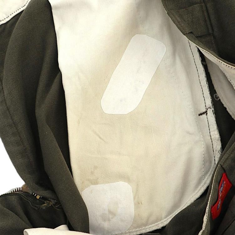 若干の使用感と色褪せ、数ヶ所薄汚れ、内側にシミ、右ポケット内側に補修跡があります。