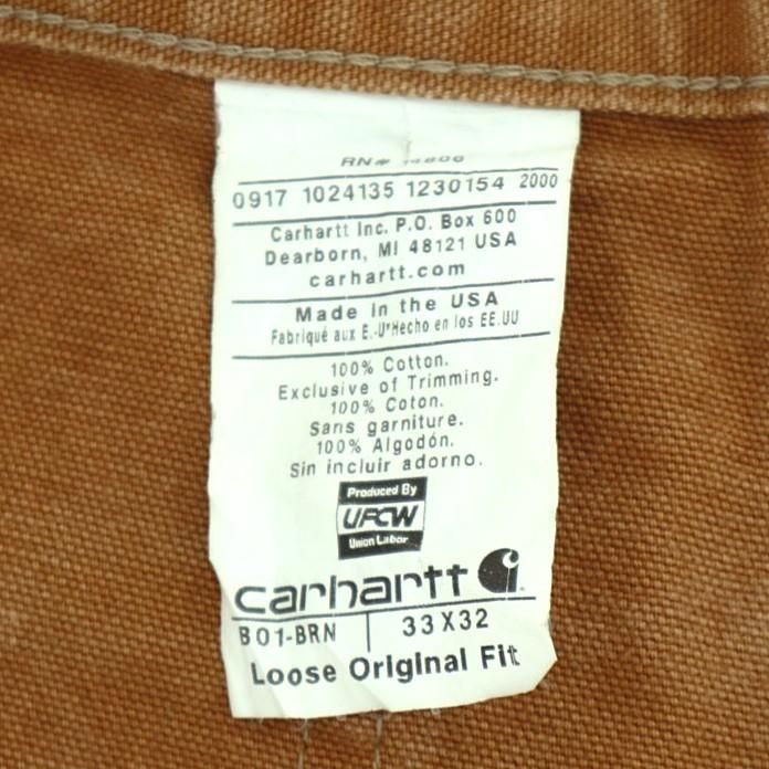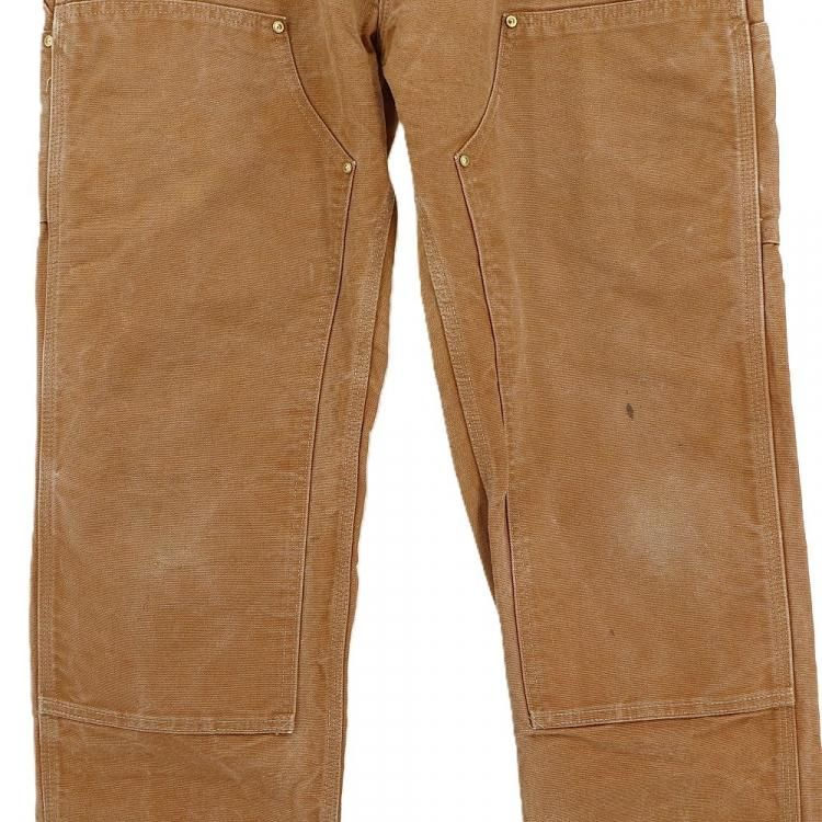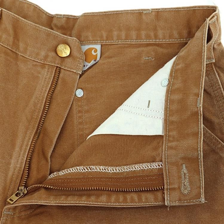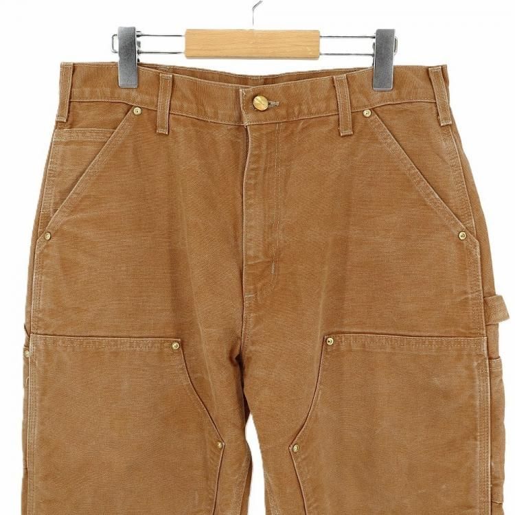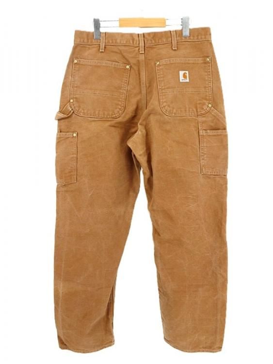 古着 USA製 Carhartt カーハート 刺繍タグ ブラウン ダック地 B01 ダブルニー ペインター パンツ / W33インチ