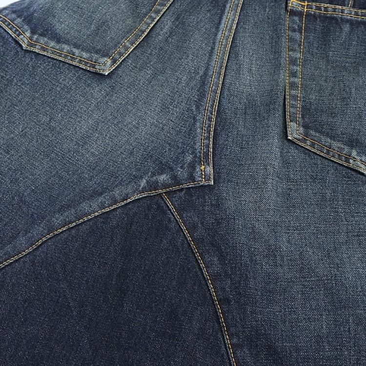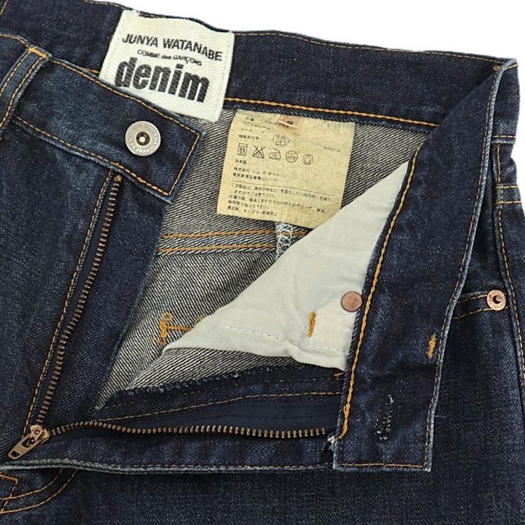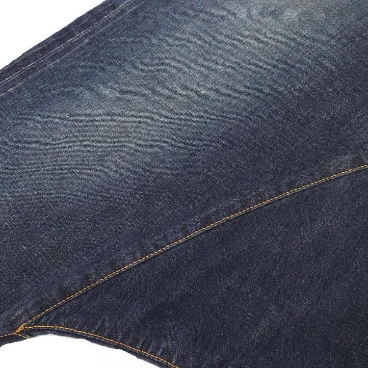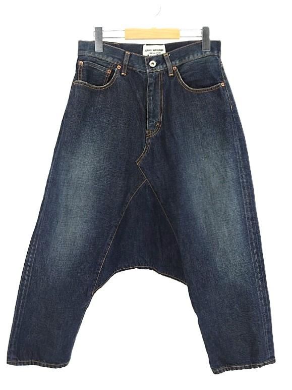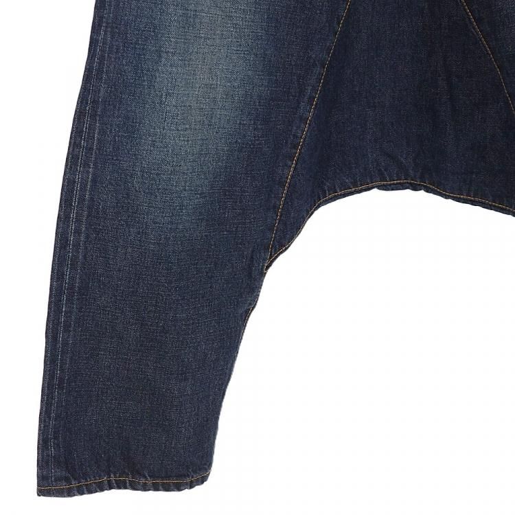 コメント:AD2016 ジュンヤのデニム サルエルパンツです。 こちらは5ポケットのデニムスカートの様な切替しデザイン。 変にデザインされ過ぎていない所がポイントす。 デザインはシンプルですが、サイドは赤耳の生地を使用し、バックのダーツは切り込みを入れて縫い合わせしてたり、オリジナルの刻印入りドーナツボタン・リベット・ジッパーを使うなどの拘りが。 他にはコインポケットにも赤耳が使われてたり、ウエストバンドの上はシングルステッチだったりと。 デザイナーズブランドなので、もっと細かい拘りがあるかと思います。 見ているだけで楽しいアイテムです。
