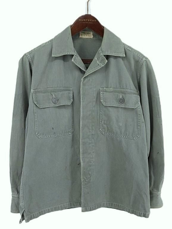 古着 50’s ビンテージ 米軍 U.S.AIR FORCE USAF アメリカ空軍タイプ 比翼ボタン セージグリーン ユーティリティシャツ ジャケット / メンズS相当