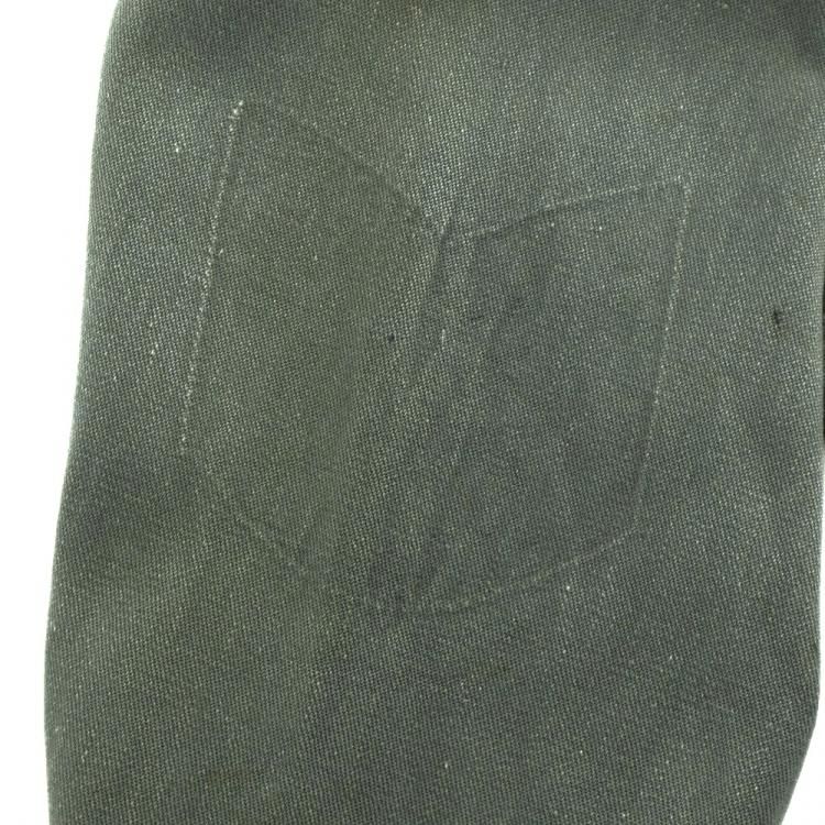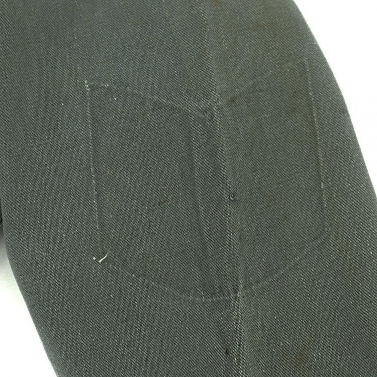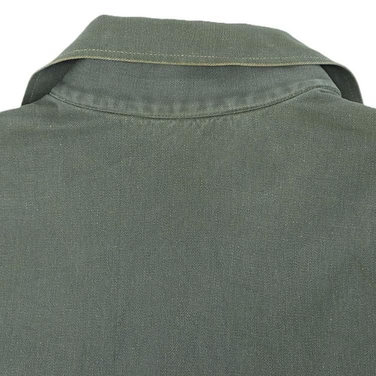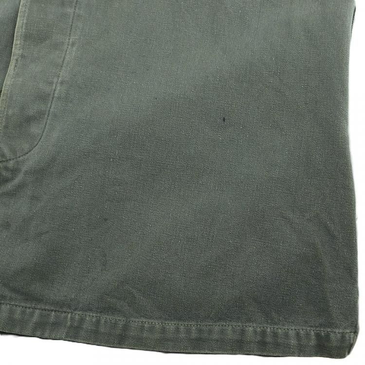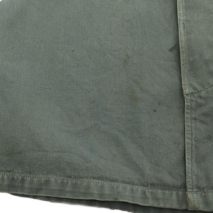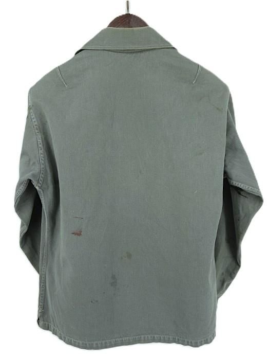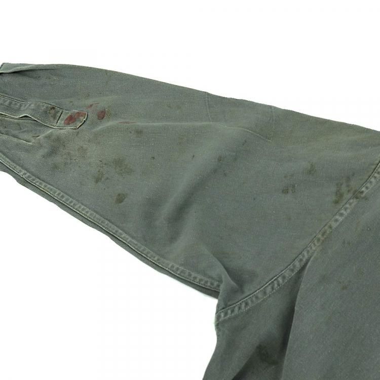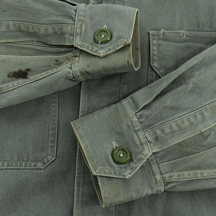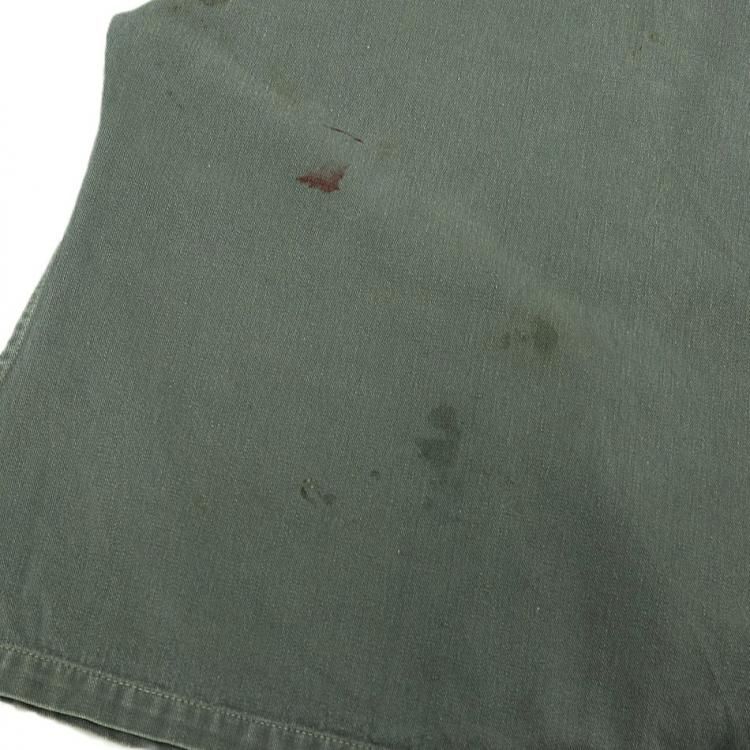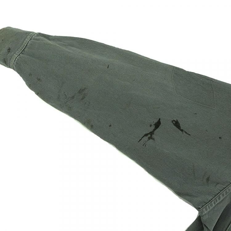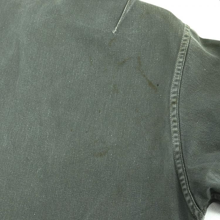 両袖とフロント1番下のボタンが付け替えられています。 全体的に使用感とシミと汚れ、左右袖にワッペン跡があります。