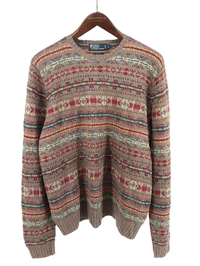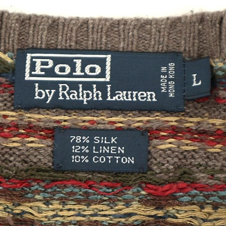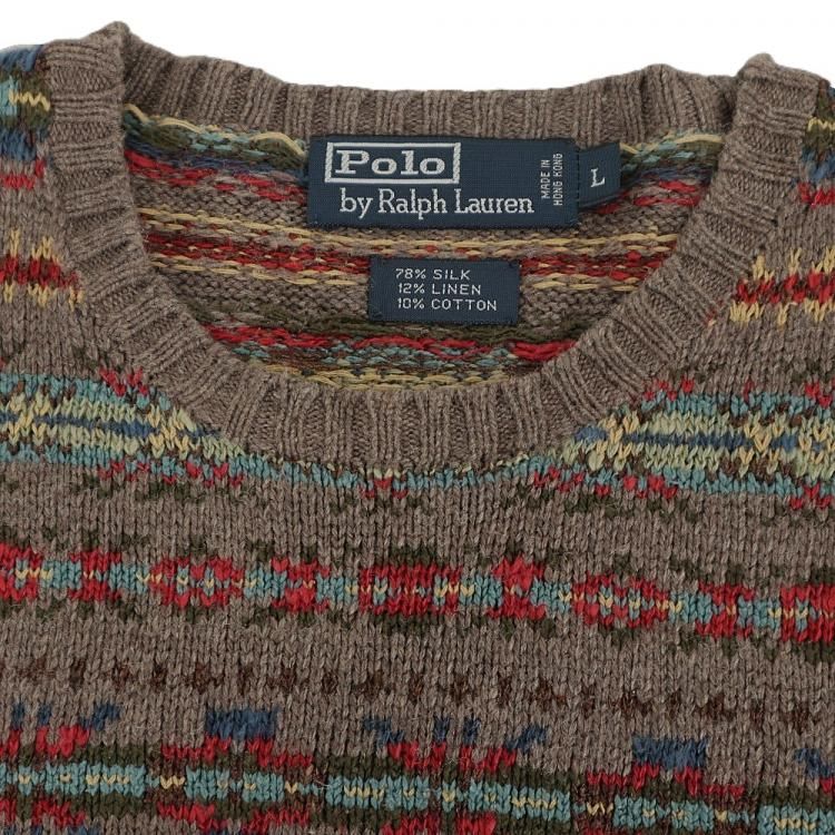 古着 90's POLO by Ralph Lauren ポロラルフローレン フェアアイル柄 シルク・リネン・コットン ニット セーター / メンズL