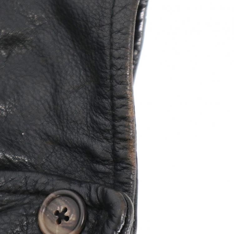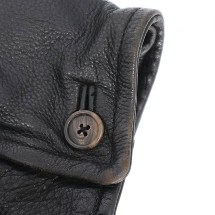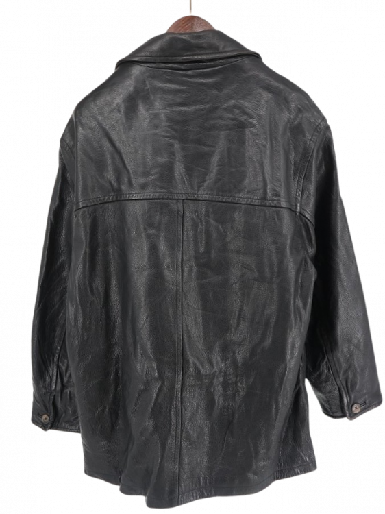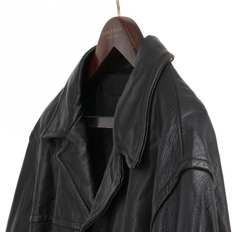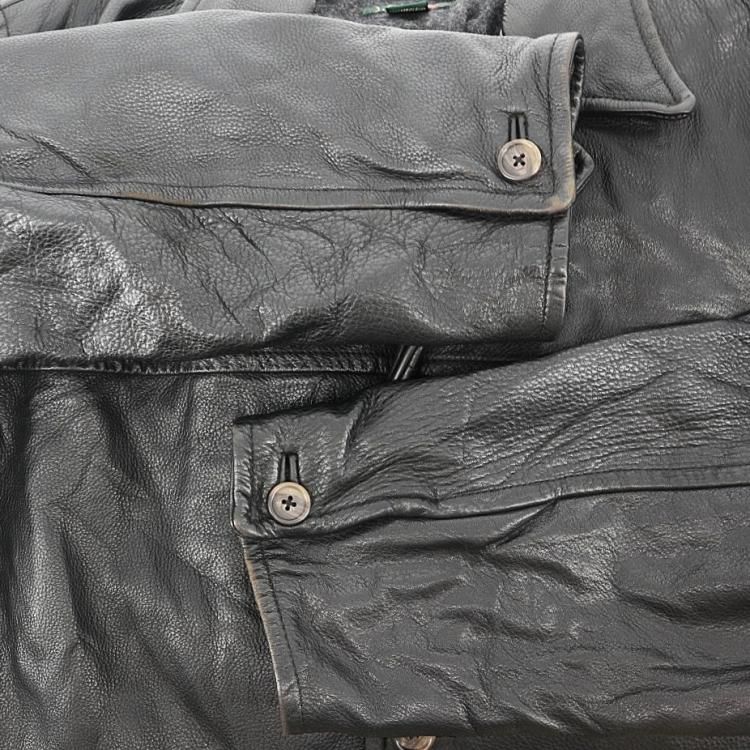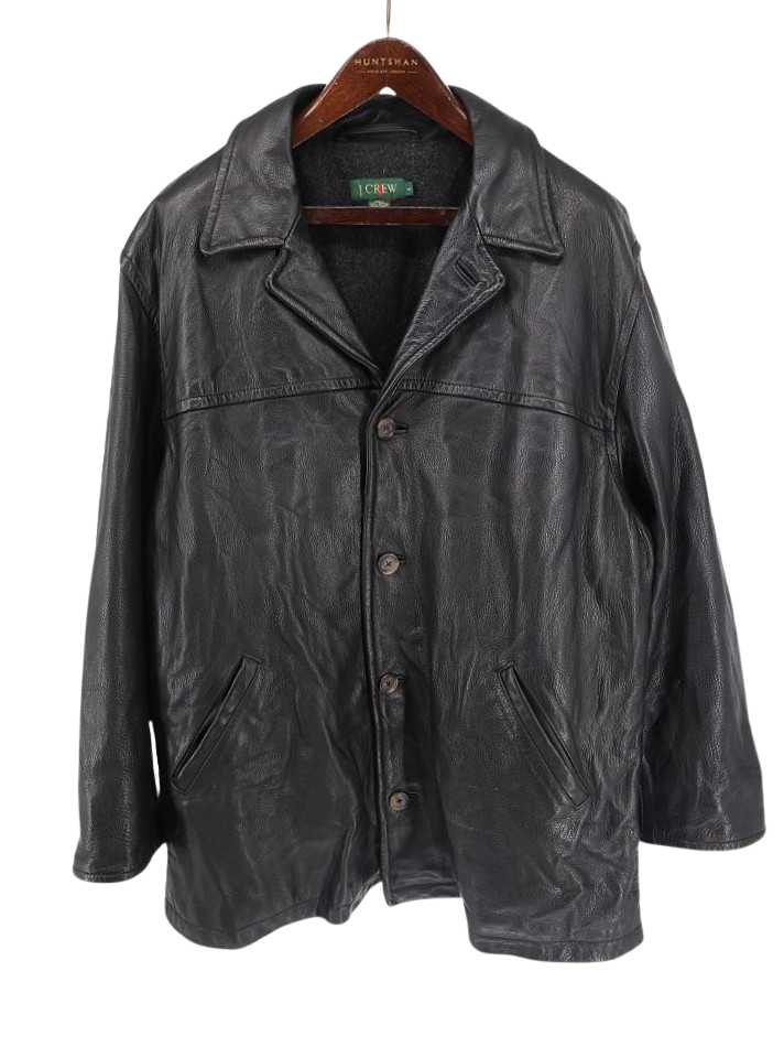 コメント:90年 オールドJクルーのレザー コートです。 雰囲気の良い黒のシボ革を使い、ボタンフライのカーコートタイプ。 近年インフルエンサーが着用した事で注目が集まるカーコート。 肉厚のしっかりしたレザーで長く愛用できる渋いコートは持ってて損はありません。