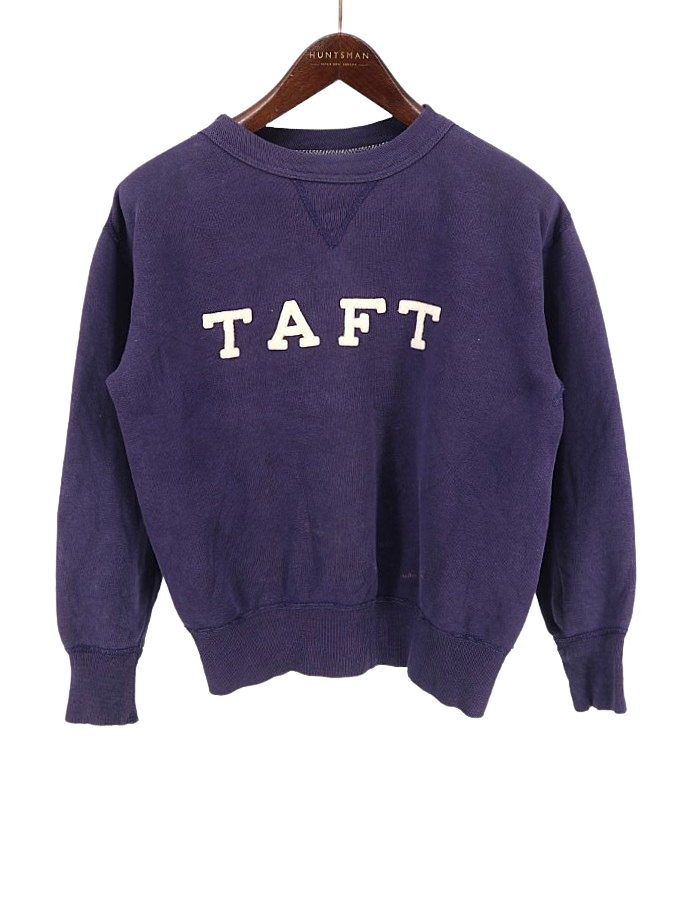 古着 50's~60’s ビンテージ 前Vガゼット TAFT フェルトワッペン ナス紺 ネイビー スウェットシャツ / メンズM相当