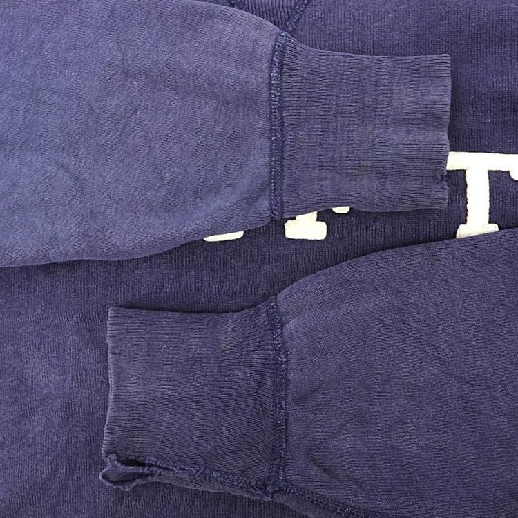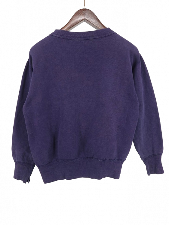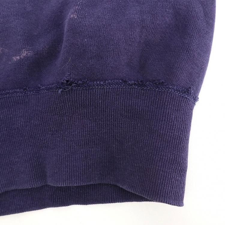 コメント:50~60年代のヴィンテージスエットトレーナーです。 タグが欠損していますが、縫製よりラッセルで間違いないと思います。 胸のロゴはフェルトの貼り付け。 前Vガゼット、ステッチは全て4本針、腰リブは胴筒仕様。 サイズが小さいので女性の方にもオススメです。
