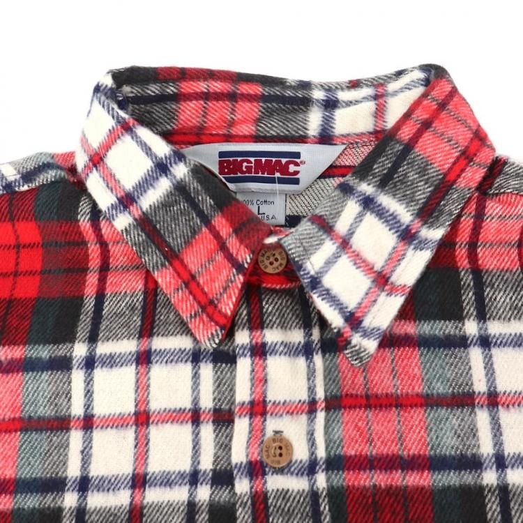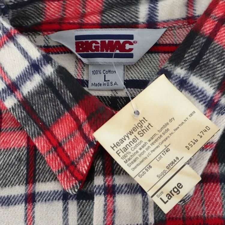 古着 未使用 タグ付き デッドストック 80's USA製 BIGMAC ビッグマック レッド×グリーン チェック コットン 長袖 ヘビー フランネルシャツ / メンズL