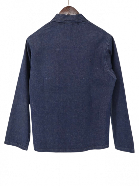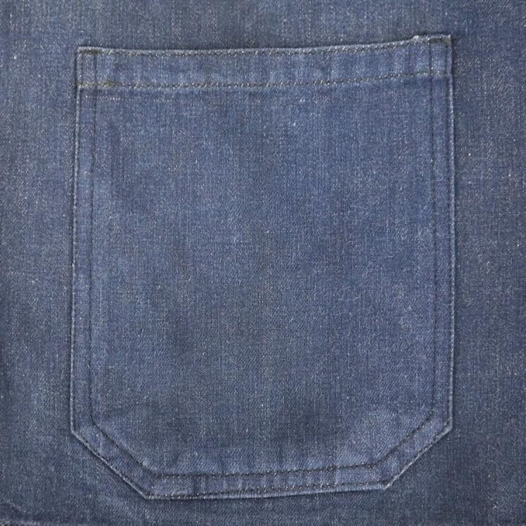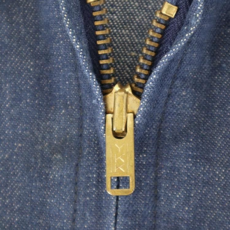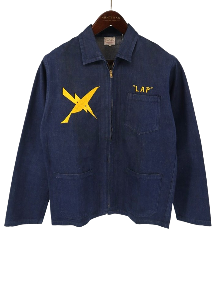 コメント:おそらく50年代あたりのヴィンテージ デニム ブルゾンです。 日本のJun's Co.社のテイラーメイド品。 詳細は不明ですが、米軍のスーベニアになるかと思います。 前立て裏がミミ使いになった、3ポケットのブルゾンで、右胸に大きなマークと、左胸に"LAP"の刺繍がされています。 多少の汚れはありますが、あまり使用感の感じれない良い状態。 胸の羽根?とサンダー?の刺繍がカッコイイのでこれだけでも買いではないでしょうか。