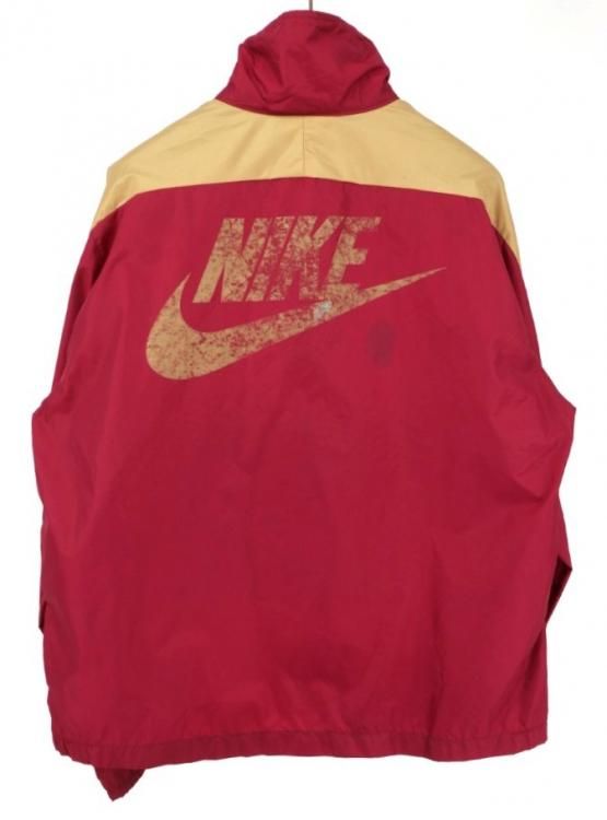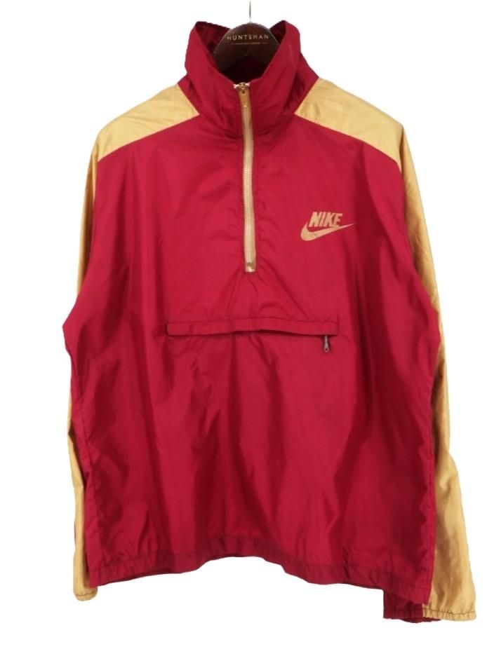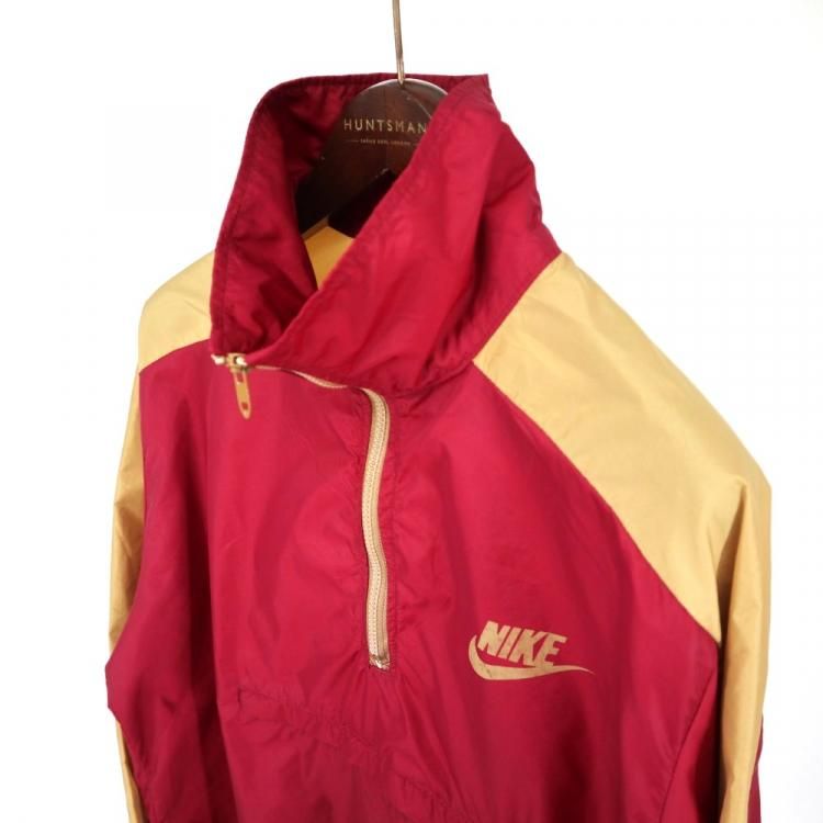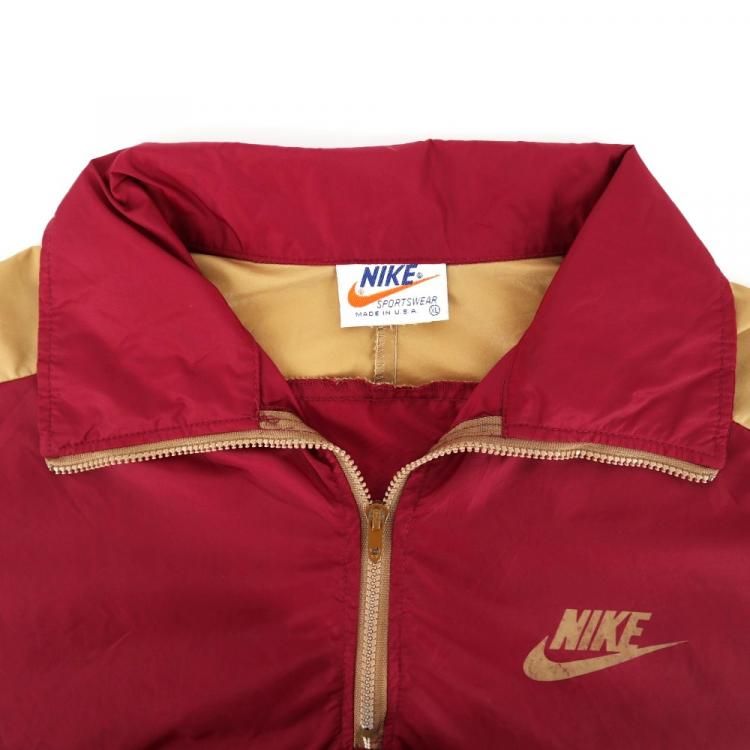 古着 70’s ビンテージ USA製 NIKE ナイキ オレンジタグ ハーフジップ エンジ×ゴールド ナイロンプルオーバー ジャケット / メンズXL