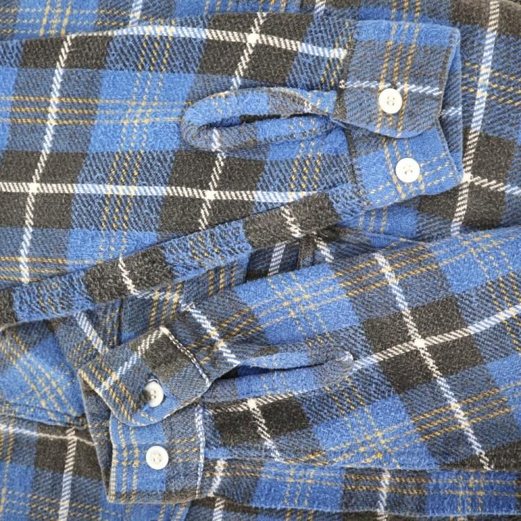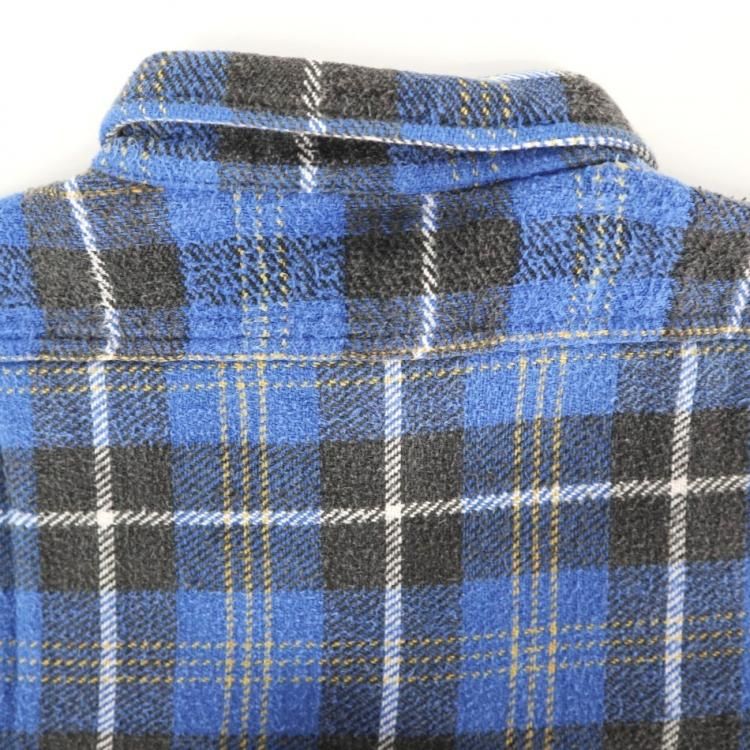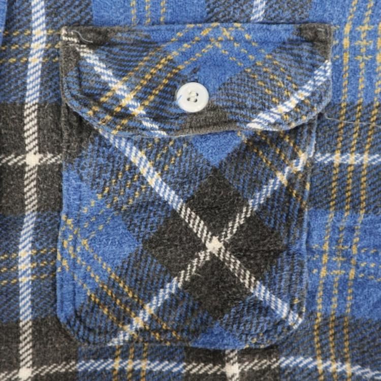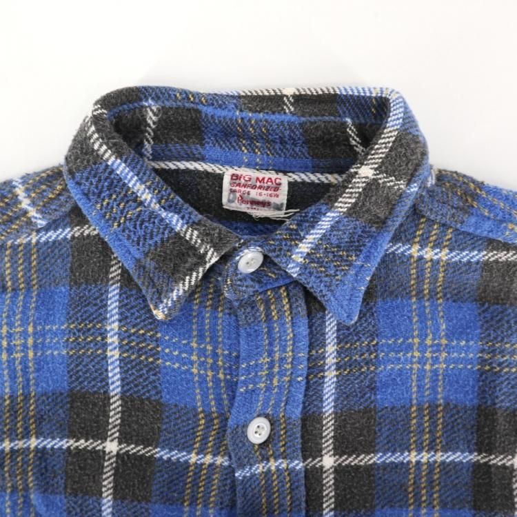 古着 60’s ビンテージ BIGMAC ビッグマック 皿ボタン ブルー×ブラック×イエロー チェック 長袖 ヘビー フランネルシャツ / メンズL