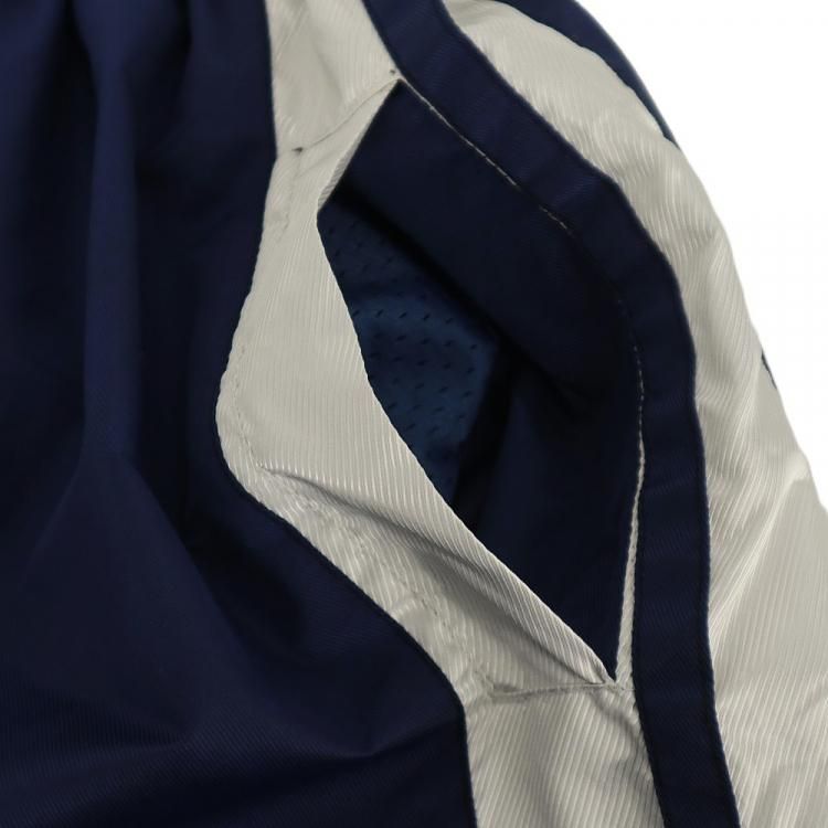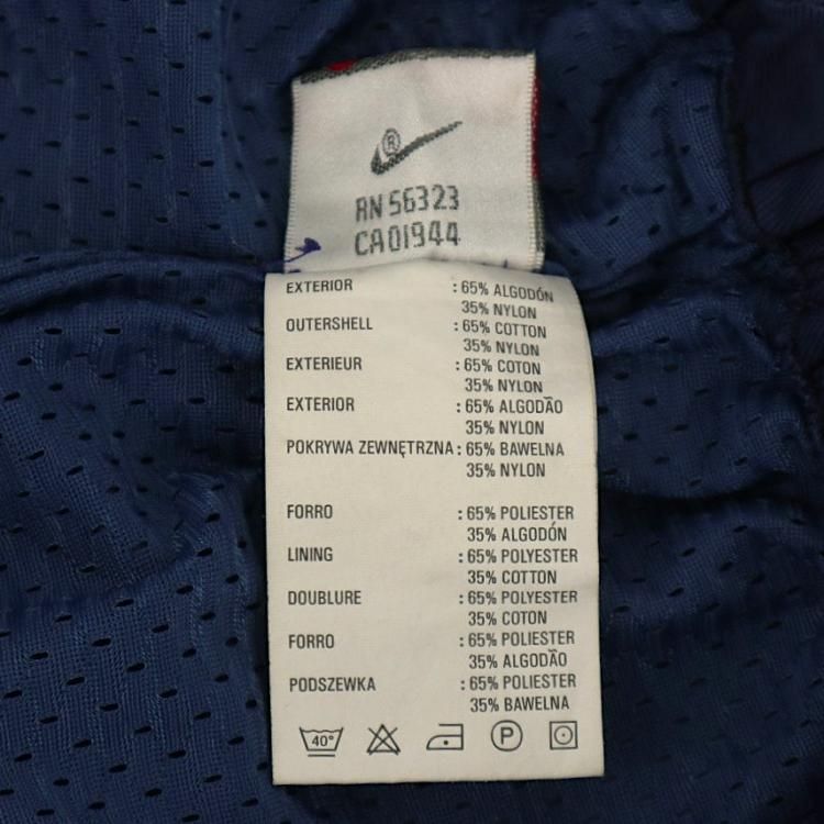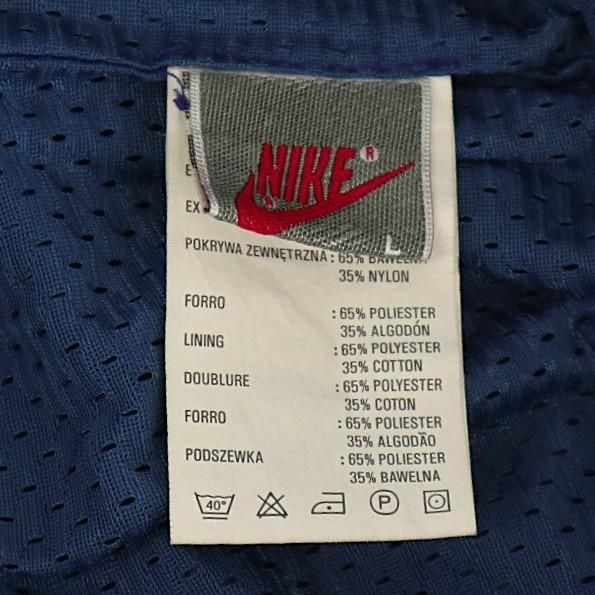 コメント:90年代 ナイキのトラックパンツです。 いわゆるシャカシャカ系ですが、内側全面にメッシュライナーが付くので肌離れしやすく、表地はコットンの混合率が65%と高く耐久性が良くなっています。 裾のドローコードを絞ってシルエットを変える事も可能。 サイドラインが光沢あるホワイトなので、遠目ではシルバーに見えます。 ランニング等の運動やダンス・クラブ遊びにも最適ではないでしょうか。