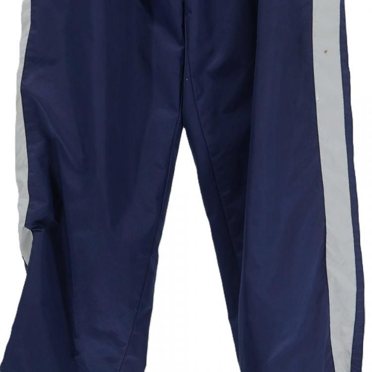 古着 90’s NIKE ナイキ 銀タグ コットン・ナイロン ツイル ネイビー×シルバー トラックパンツ / レディースL