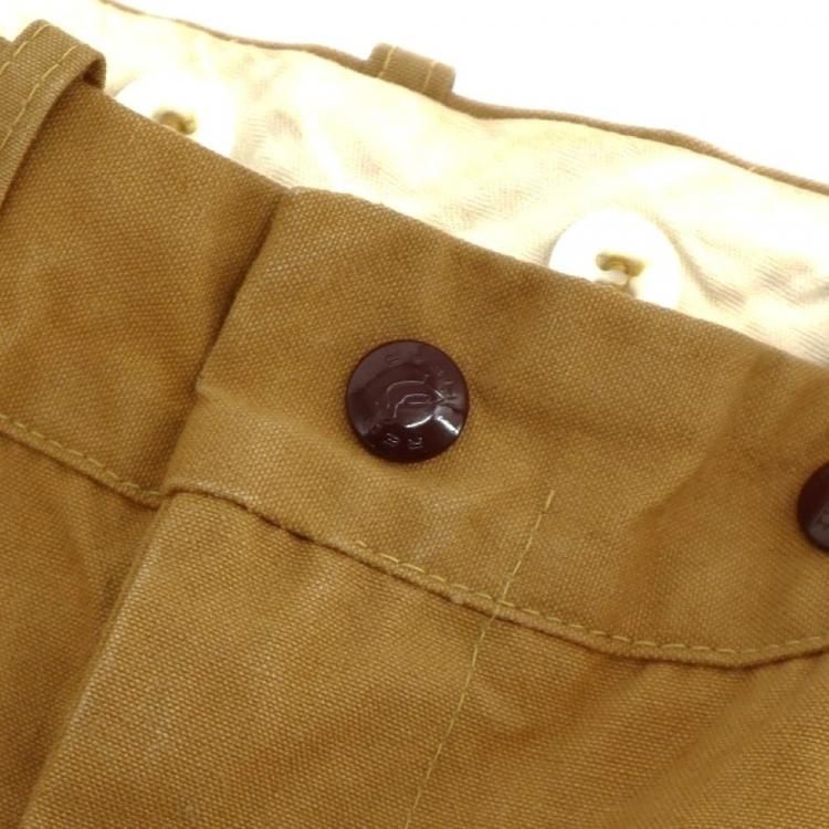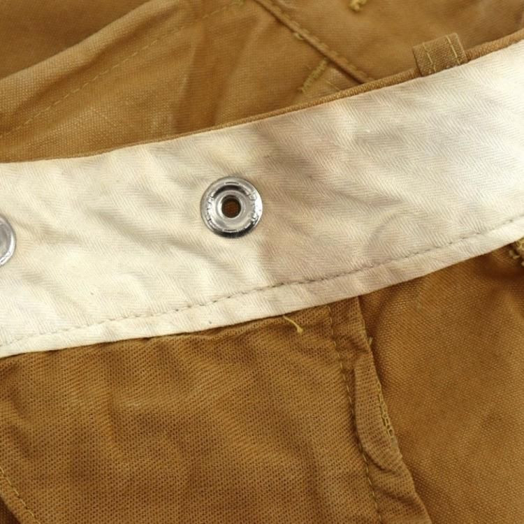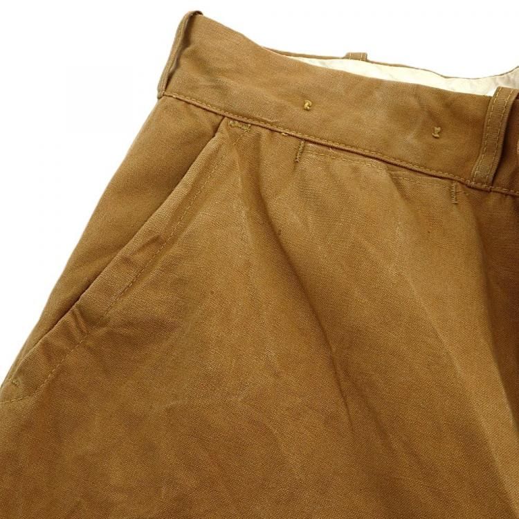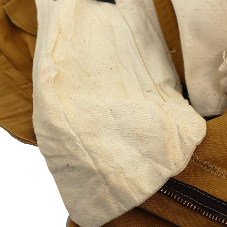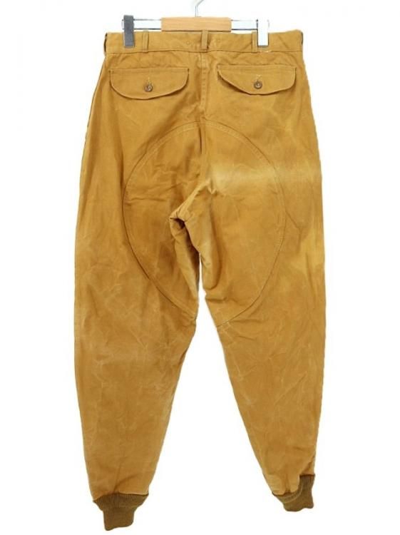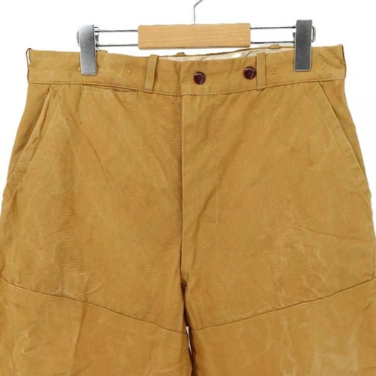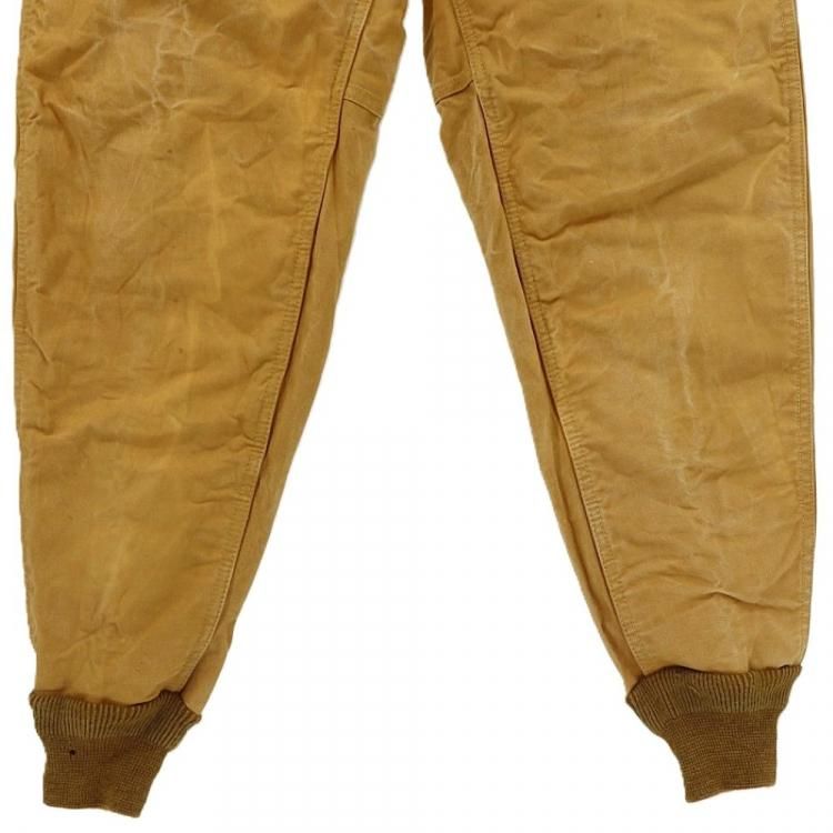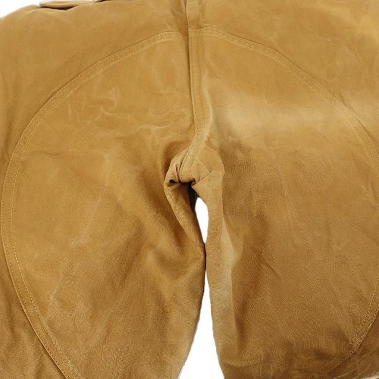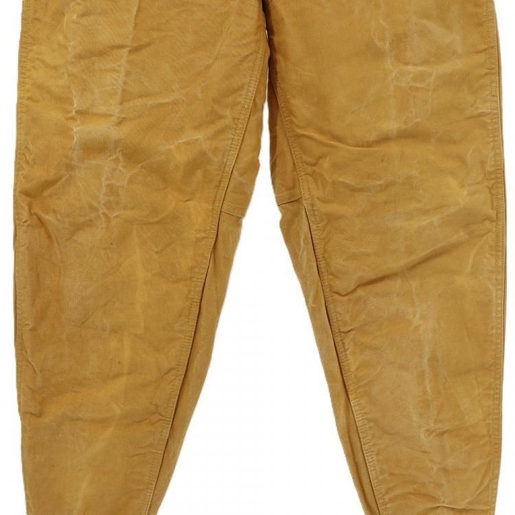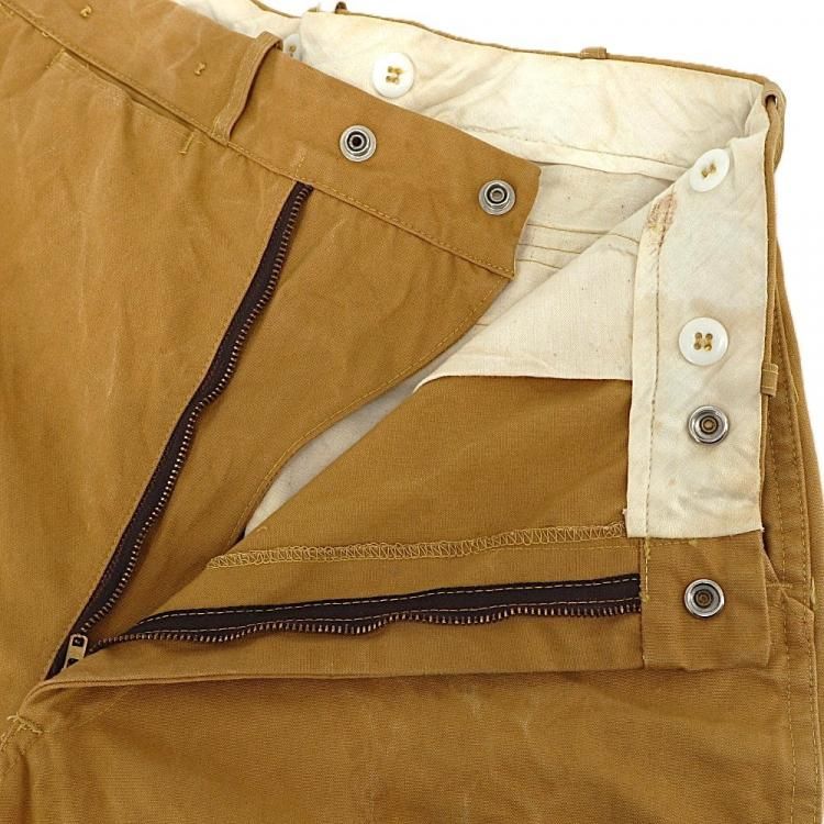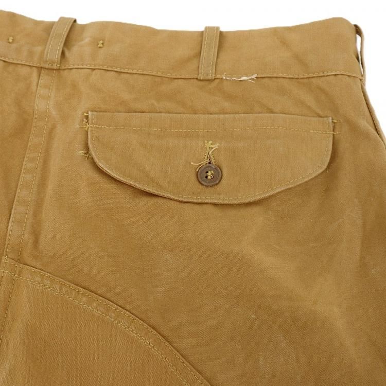コメント:70年代のヴィンテージ レッドヘッドのハンティングパンツです。 まだ柔らかいと思える厚みのコットンキャンバス地のボディに、前面腿から下とオシリには生地を二重にして補強しています。 裾がリブ編みニットで絞られたシルエット。 ウエストにコインポケット、内側にはサスペンダーボタンが付いています。 42タロンジップを使用。  庭いじりや何か作業される時にも重宝するパンツです。