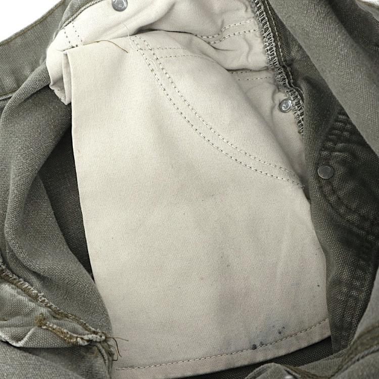 コメント:Carharttの10年製造モデル ダックペインターパンツです。 ダブルニーはここ数年で一気に人気アイテムになりましたね。 こちらは人気のモスグリーン色。 綺麗にヒゲが入って雰囲気の良い個体です。 しかも緩く履くには嬉しい大きいサイズ。
