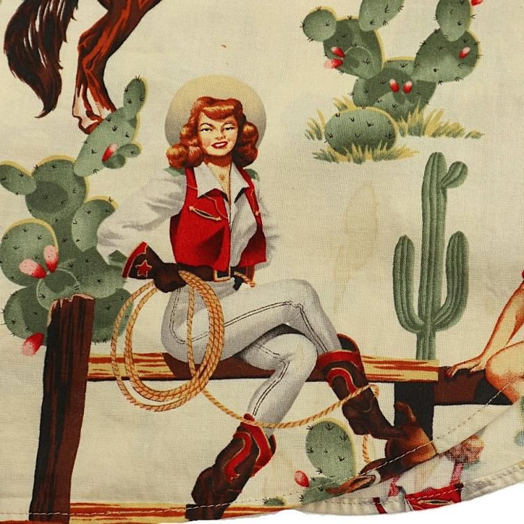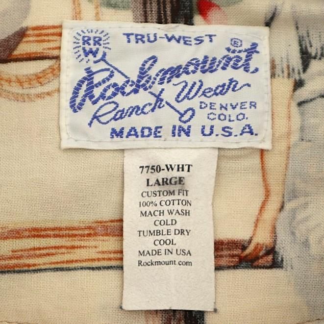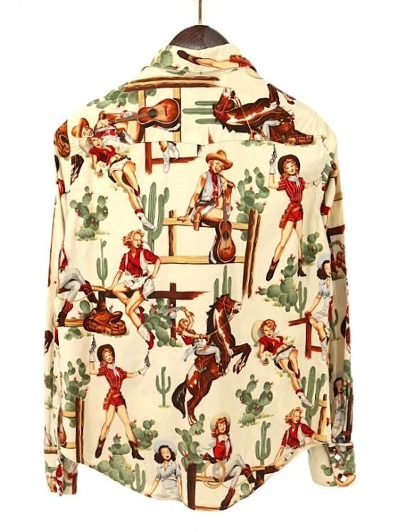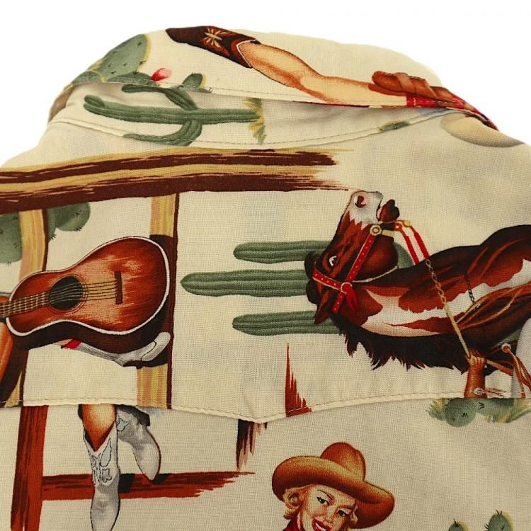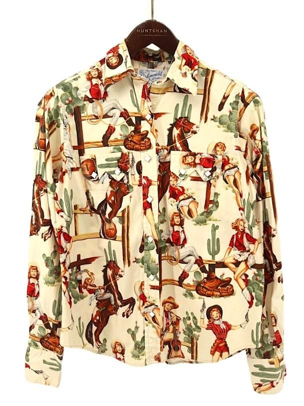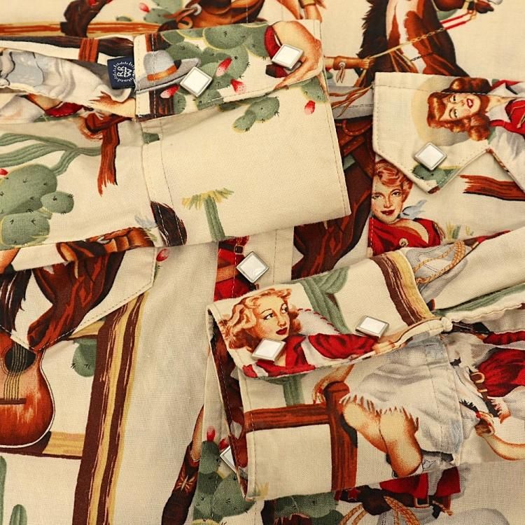 古着 USA製 ROCKMOUNT ロックマウント 総柄 ピンナップガール カウガール柄 コットン ウエスタンシャツ / レディースL