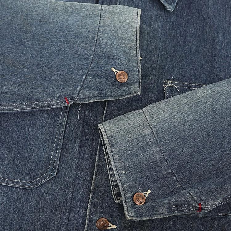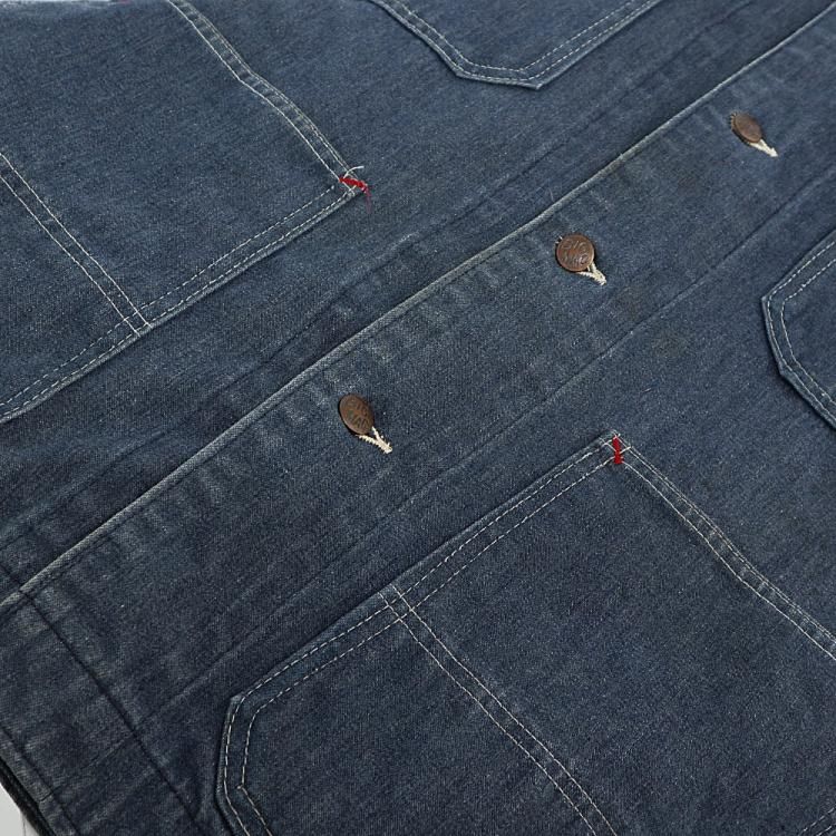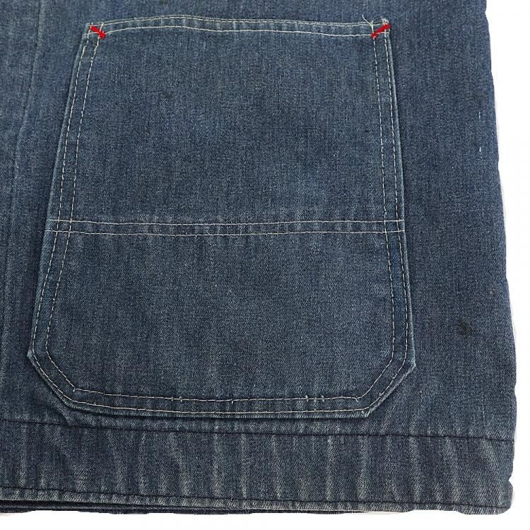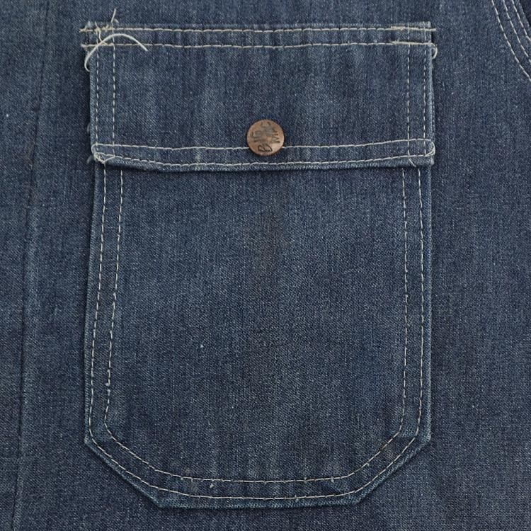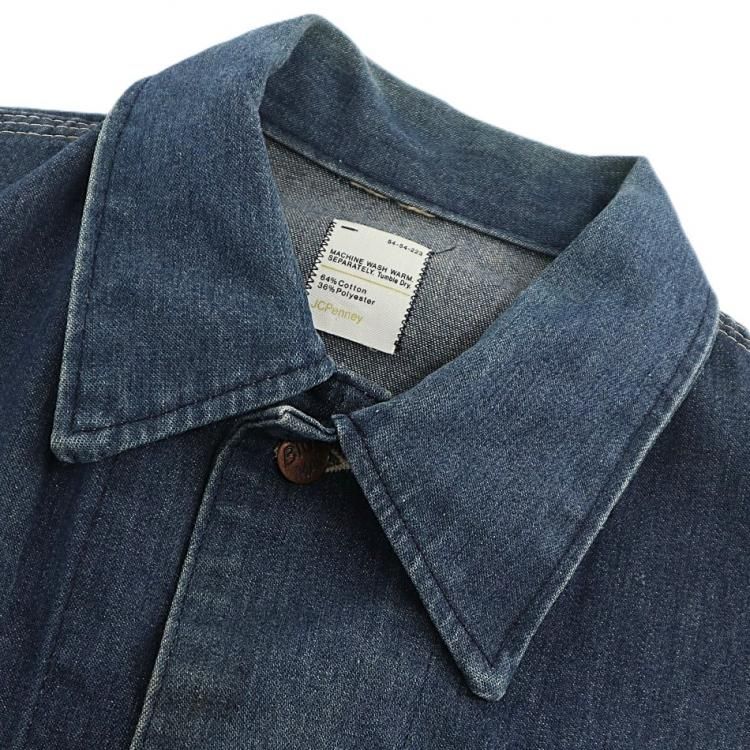 コメント:70年代のヴィンテージ ビックマックのカバーオールジャケットです。 言わずと知れたアメリカ三大ストアブランドの1つジェーシーペニーのプライベートブランド。 こちらはポリエステル混合なのであまり色落ちせずマットな表情になっています。 この表情も近代のワークっぽいですね。 色落ちが少なく長く楽しみたい方に向いています。