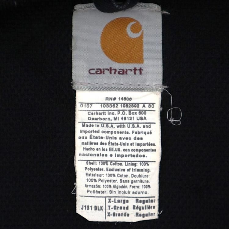 古着 00's USA製 Carhartt カーハート J131 アクティブ ジャケット ブラックダック地 フルジップパーカー / メンズXL