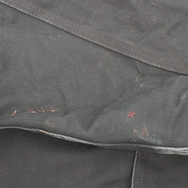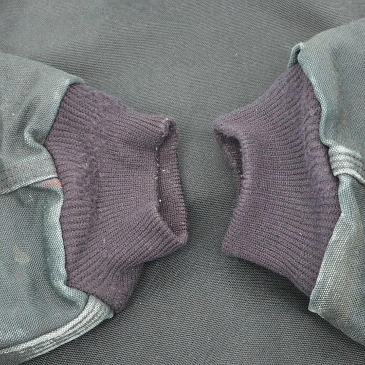 全体的に色褪せと使用感があるほか、裏地側と両袖のリブに毛玉、所々に汚れがあります。