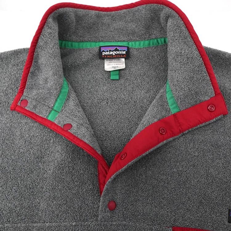 古着 2014 PATAGONIA パタゴニア グレー×エンジ SYNCHILLA スナップT ハーフボタン フリースプルオーバー / メンズXL