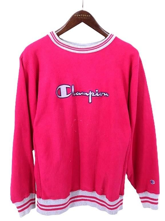 古着 90’s USA製 Champion チャンピオン REVERSE WEAVE グレーリブライン スクリプトロゴ 刺繍 ピンク系 スウェットシャツ / メンズL