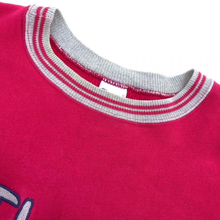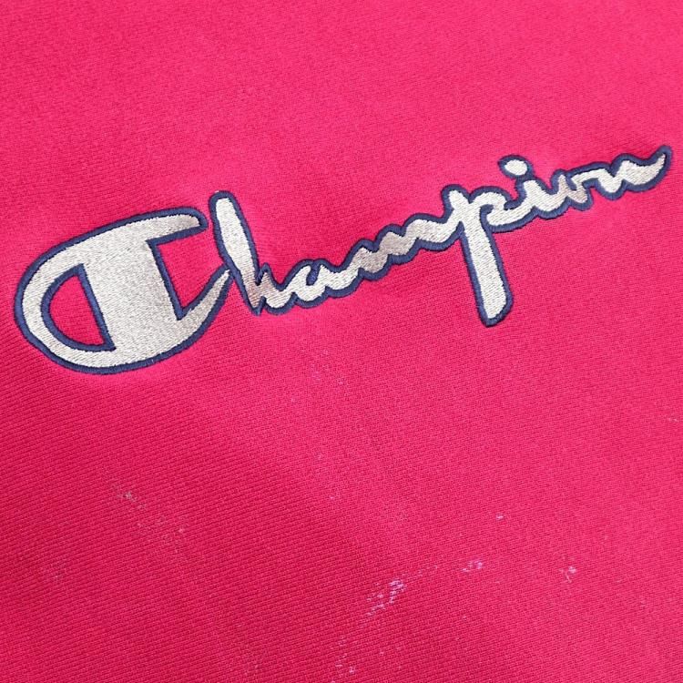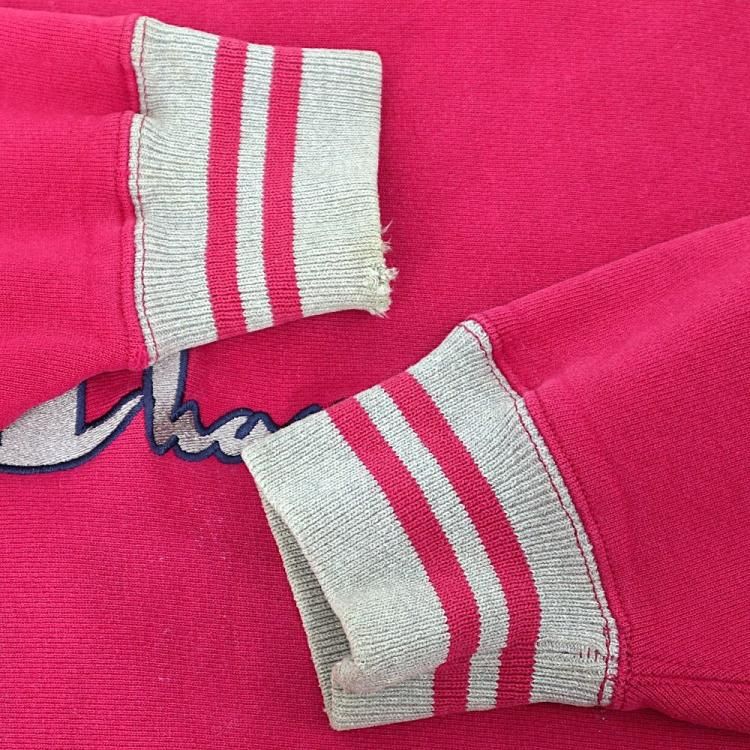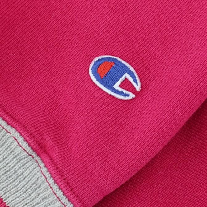 コメント:90年代 刺繍タグ Champion社製リバースウィーブです。 濃いピンク系のボディにシルバーのスクリプトロゴ刺繍、グレーのリブライン。 胸元にチャンピオンのロゴが入り、普段使いにピッタリのスエットです。