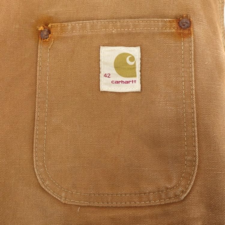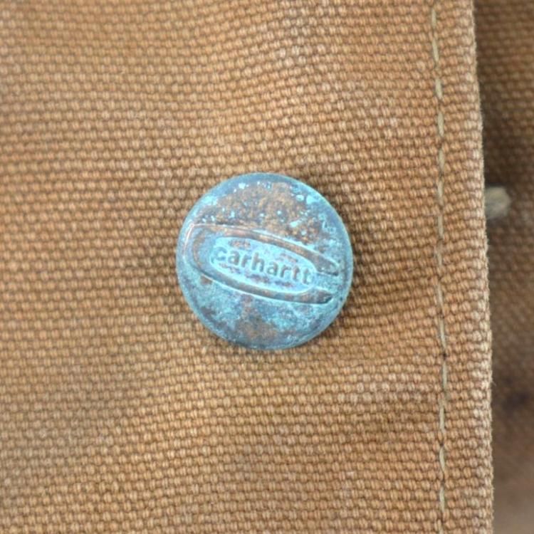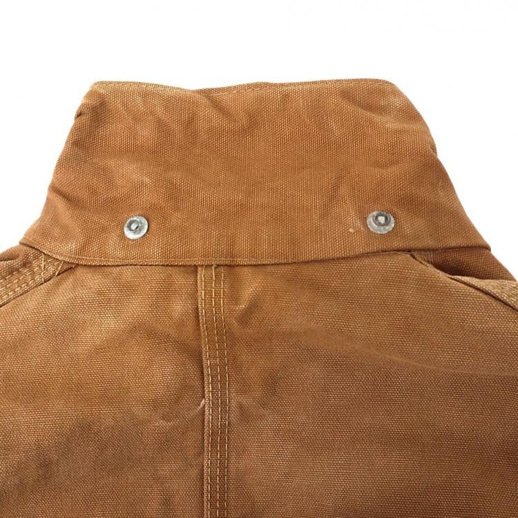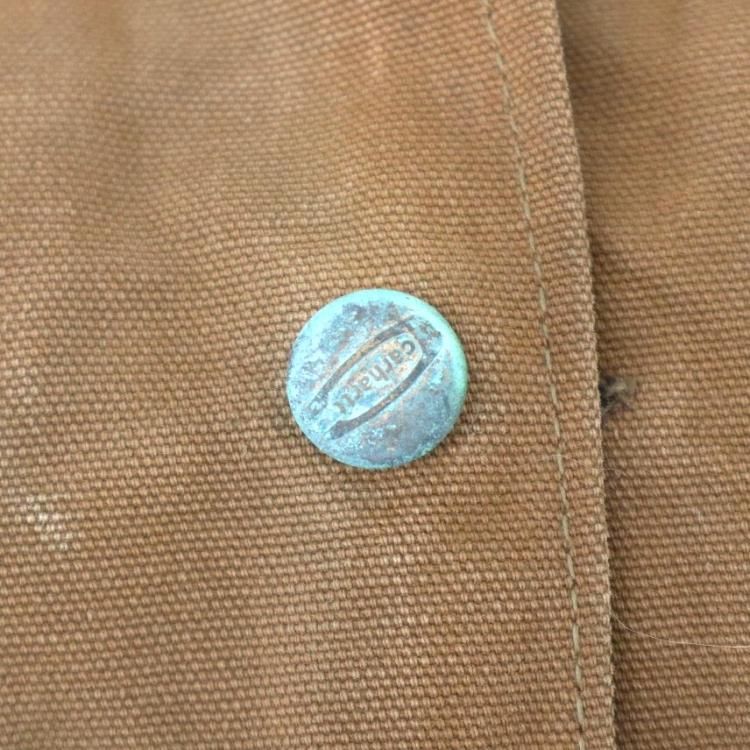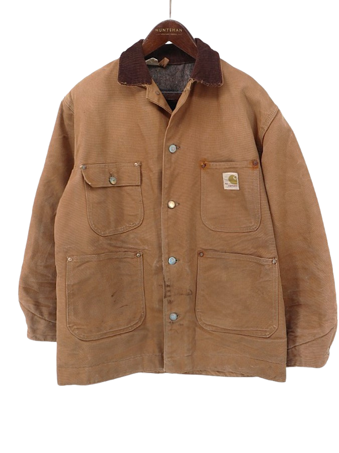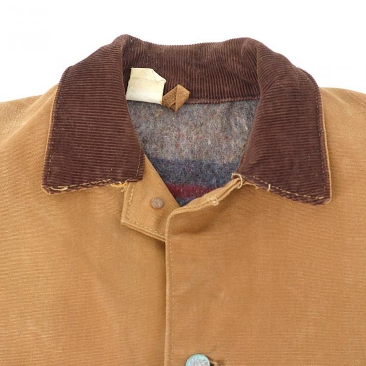 古着 60's~70’s ビンテージ Carhartt カーハート プリントタグ デカCボタン ダック地 横縞ブランケットライナー ミシガンチョアコート カバーオール / メンズ42 L相当