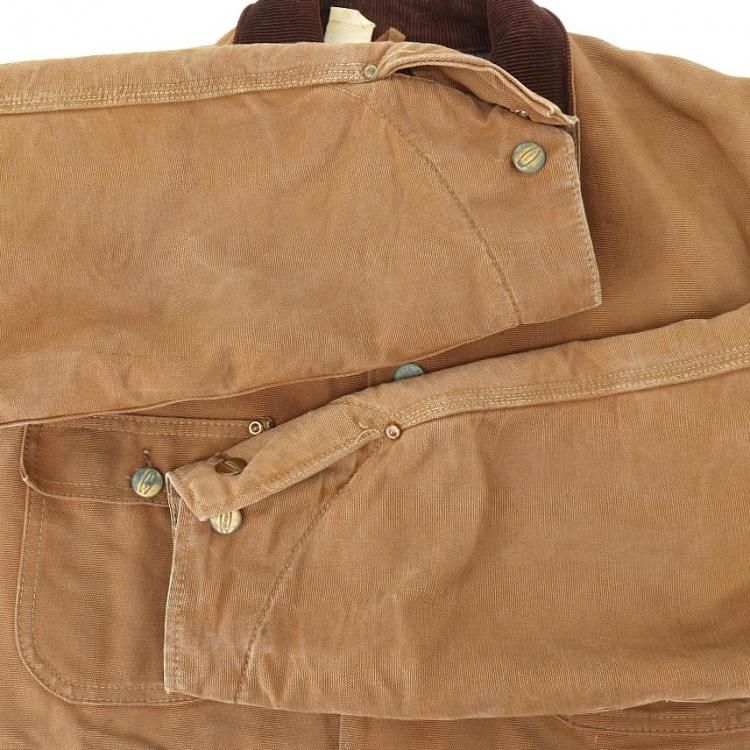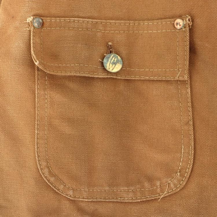 コメント:60~70年代Carharttのカバーオールジャケットです。 プリントタグにデカCボタン、裏地は横縞ブランケット。 なかなか横縞ブランケットは見かけないので、気になる方はお早めに。