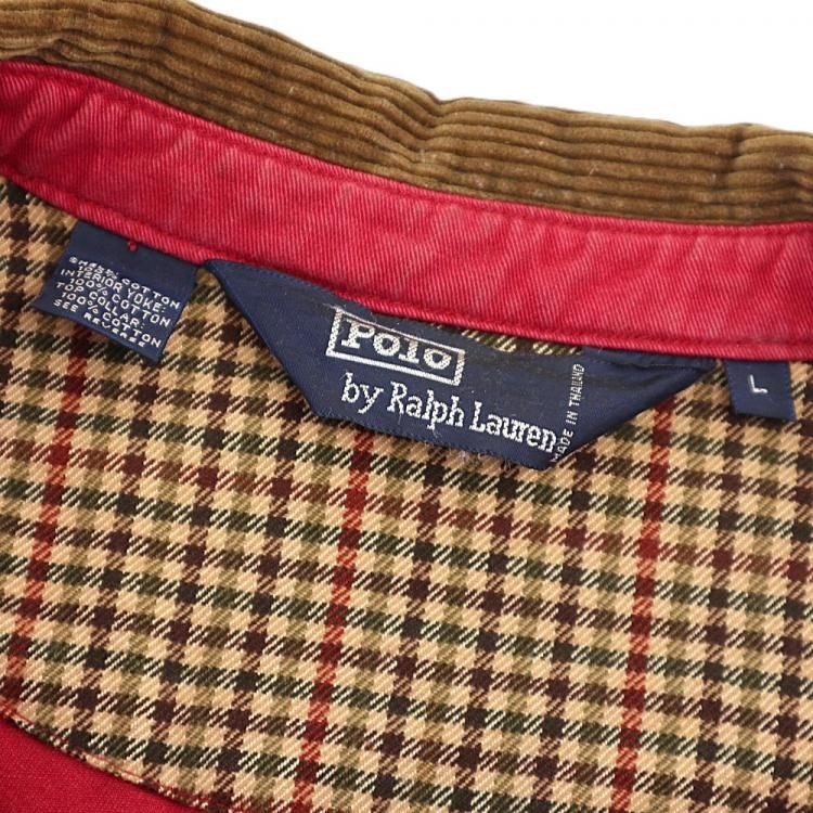 古着 90’s Ralph Lauren ラルフローレン 三角タグ エンジ コットンツイル 襟コーデュロイ スウィングトップ / メンズL