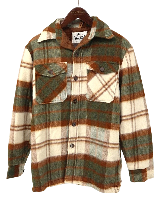 コメント:70年代ヴィンテージ 白タグウールリッチのCPOジャケットです。 茶×深緑×白のレトロな雰囲気のチェック柄。 裏ボア仕様で防寒性が高いジャケットです。