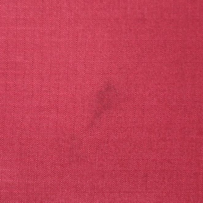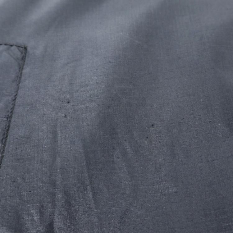 首元・右胸・左腕にシミ、ポケット付近に多数穴があります。