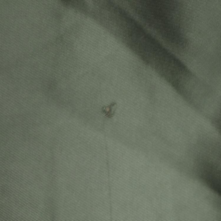 所々にシミと汚れと小穴、ジップにサビがあります。