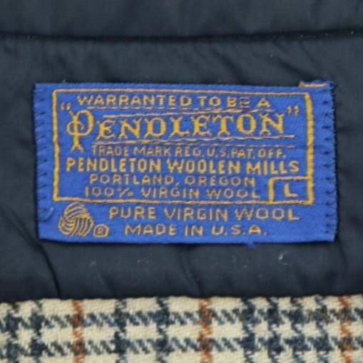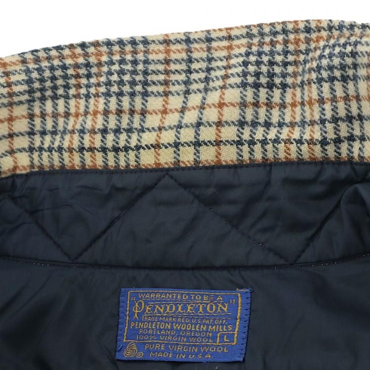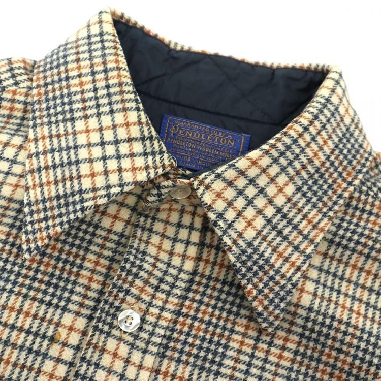 古着 70's USA製 ビンテージ PENDLETON ペンドルトン バージンウール ネイビー×ブラウン チェック柄 長袖 ロッジシャツ / メンズL
