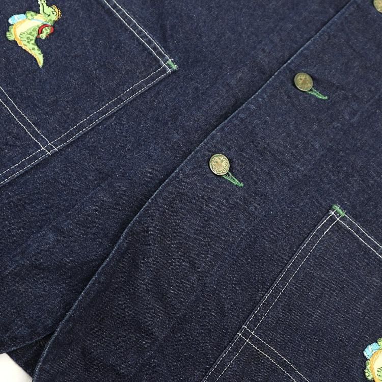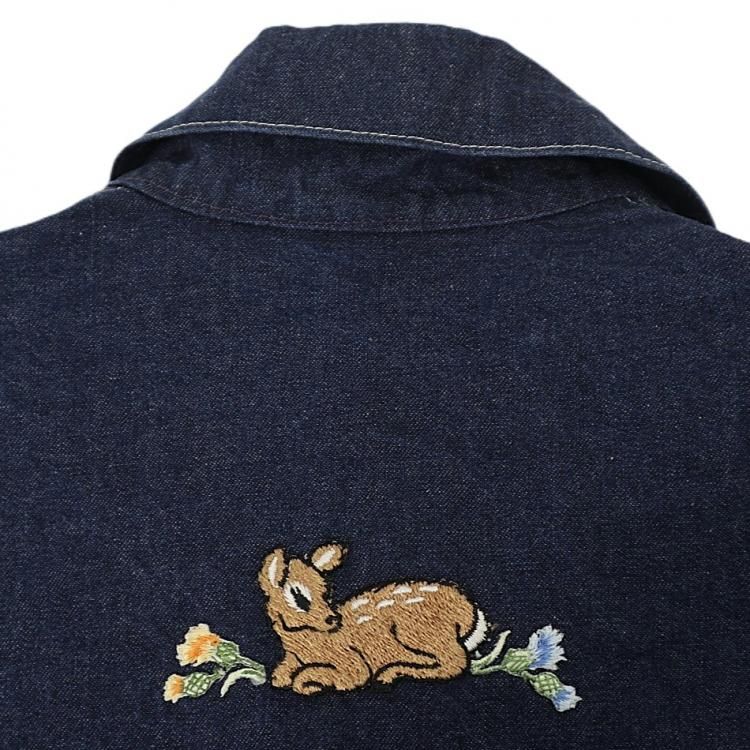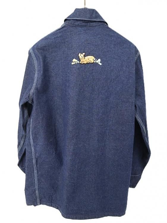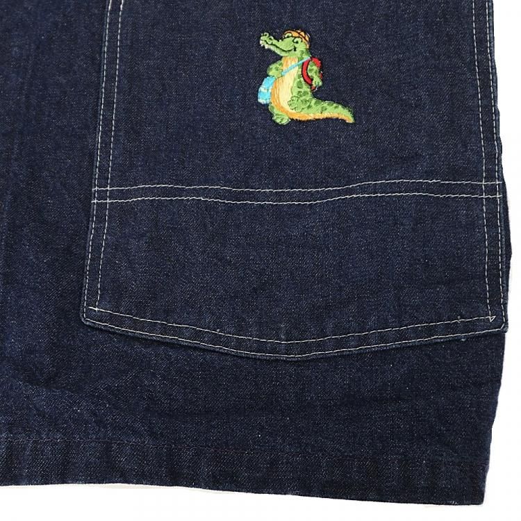 コメント:80年代のOSHKOSHデニムカバーオールです。 フロントポケットにワニ、バック上部中央にバンビのワッペンが縫い付けられたカワイイ個体。 ポケットの位置やボタンホールのグリーンステッチ、クローバーのボタンなど古くから仕様を変えずに施されたデザインが堪りません。 インディゴがしっかり残っていますので、ワッペンが不要な場合は取り外しても違和感無さそうです。