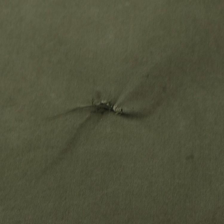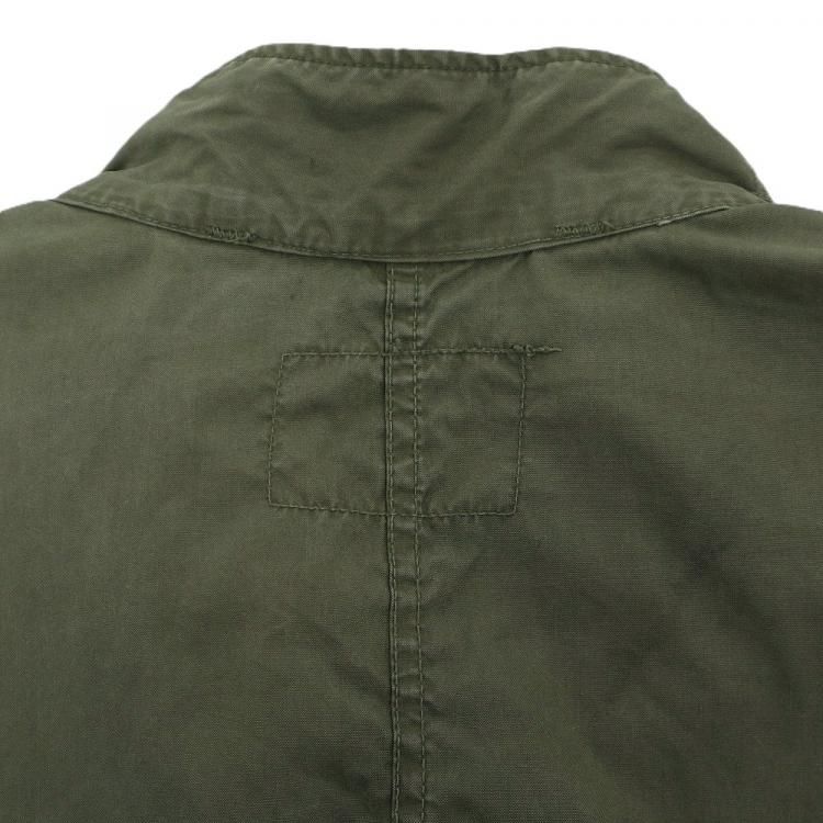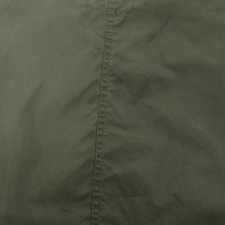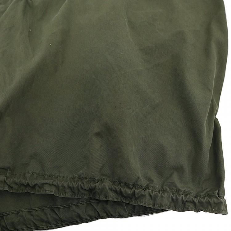 全体的に使用感とスナップボタンが摩耗により留めにくく外れやすい他、所々に薄汚れとシミと補修跡、後ろ裾に3.5cm×3cmの破れがあります。 裾のドローコードの伸縮性が無くなっています。