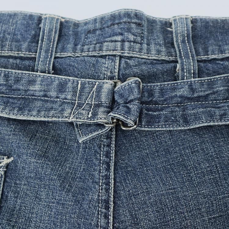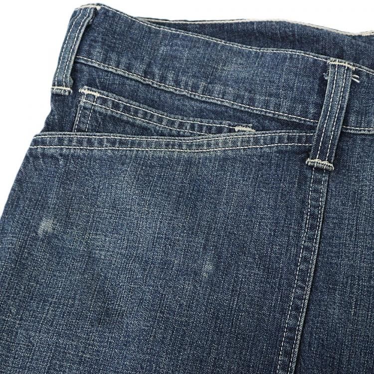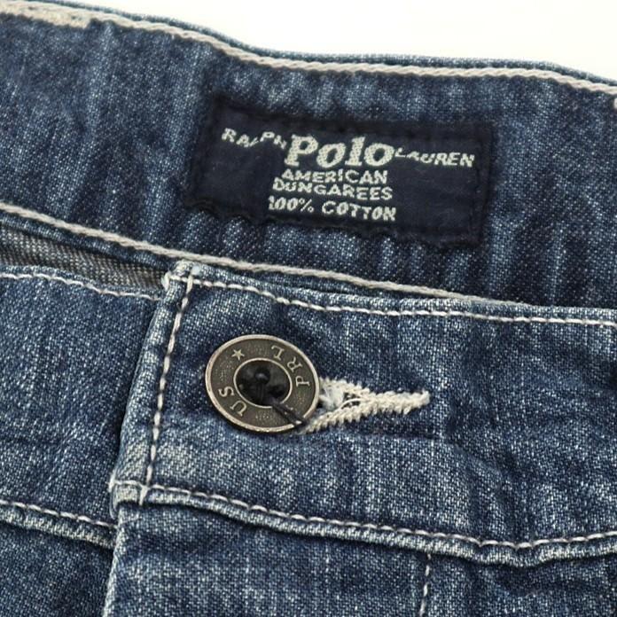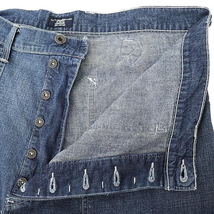 コメント:ポロラルフローレンのデニムパンツです。 こちらは30年代のアメリカ陸軍で採用されていたM-35デニムトラウザーズのデザインで、針刺しシンチバックやドーナツボタンも再現した拘りのパンツ。