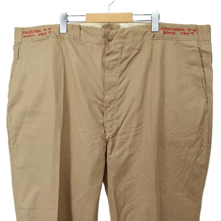 古着 未使用 デッドストック 40's~50's ビンテージ UNKNOWN ヘリンボーンツイル HBT ベージュ ビッグサイズ ワークパンツ / W48インチ
