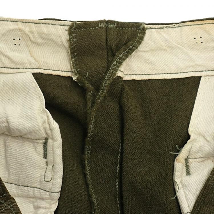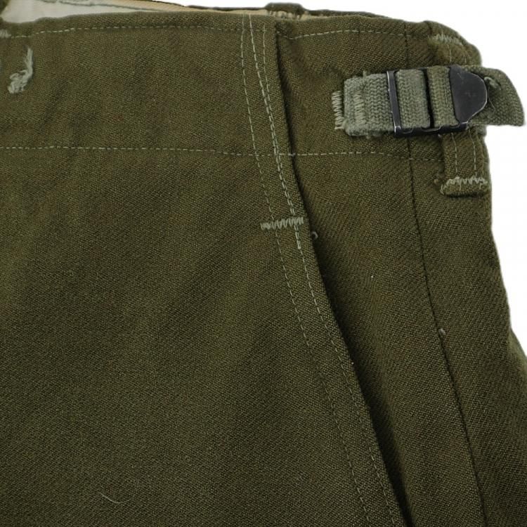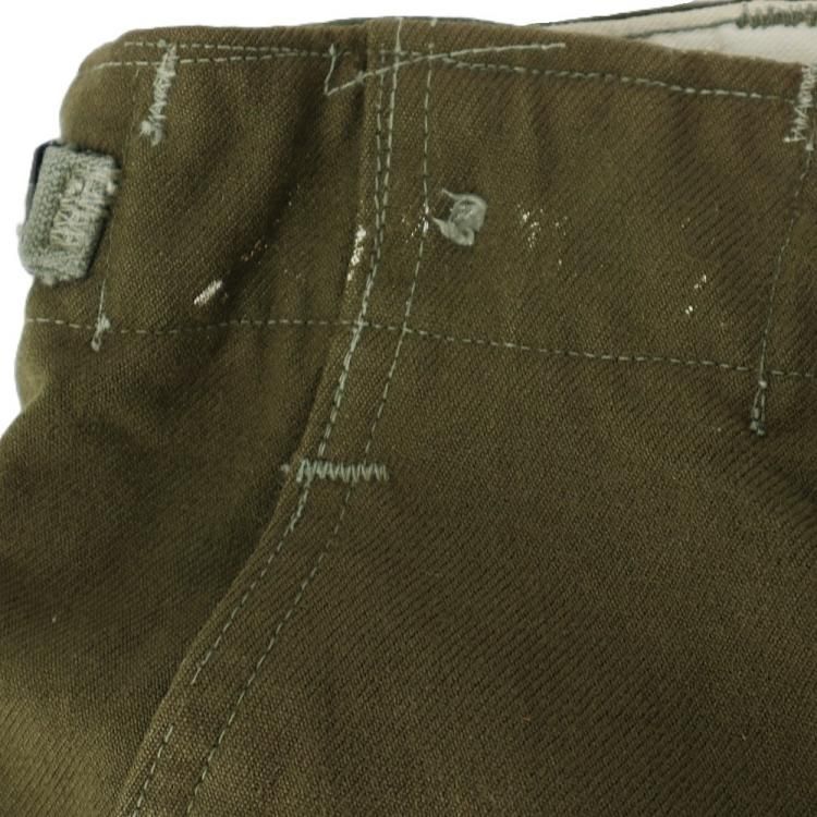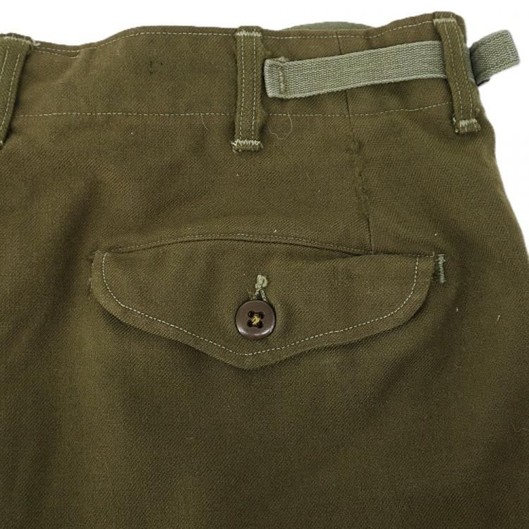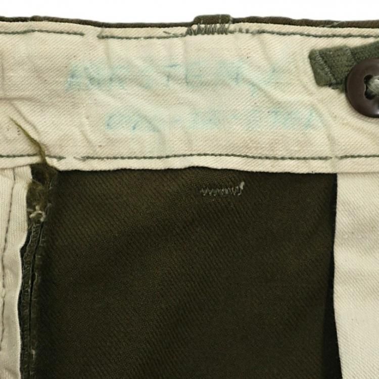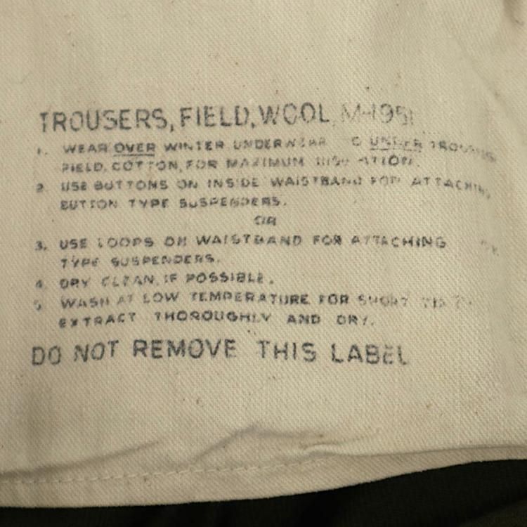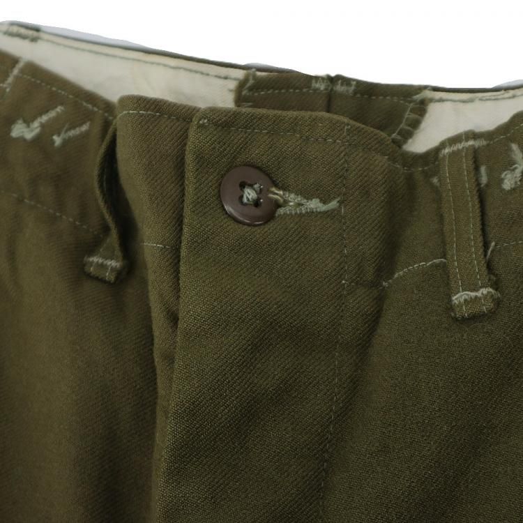 コメント:53年コントラクト 朝鮮戦争時に使用された 米軍実物 M51ウールパンツです。 サスペンダー用も含めボタンは全て平ボタン、GRIPPER ZIPPER ジップ使用で、厚手のウール生地の冬用になります。 ウール生地ですがFIELD TROUSERS なので野戦用となり、質実剛健と言った言葉が相応しいパンツになります。