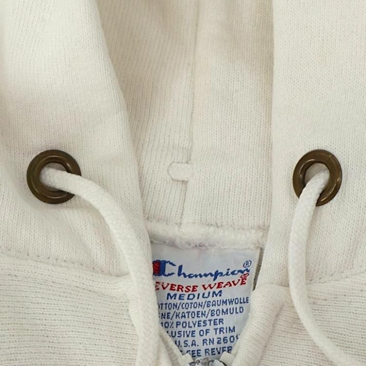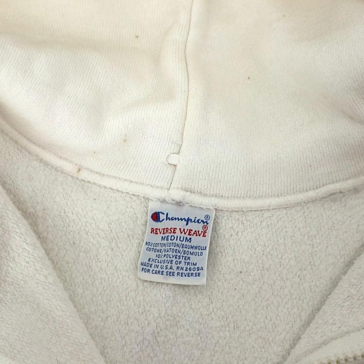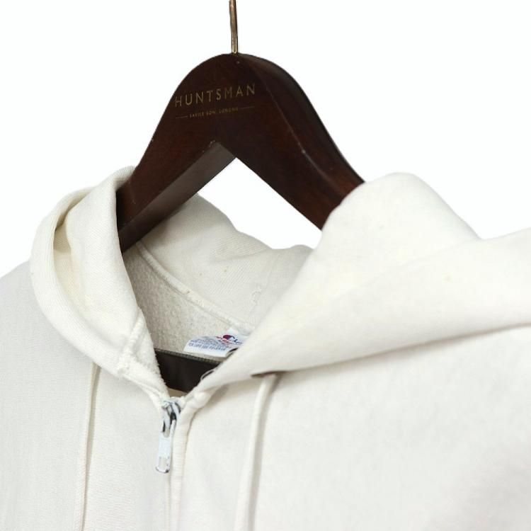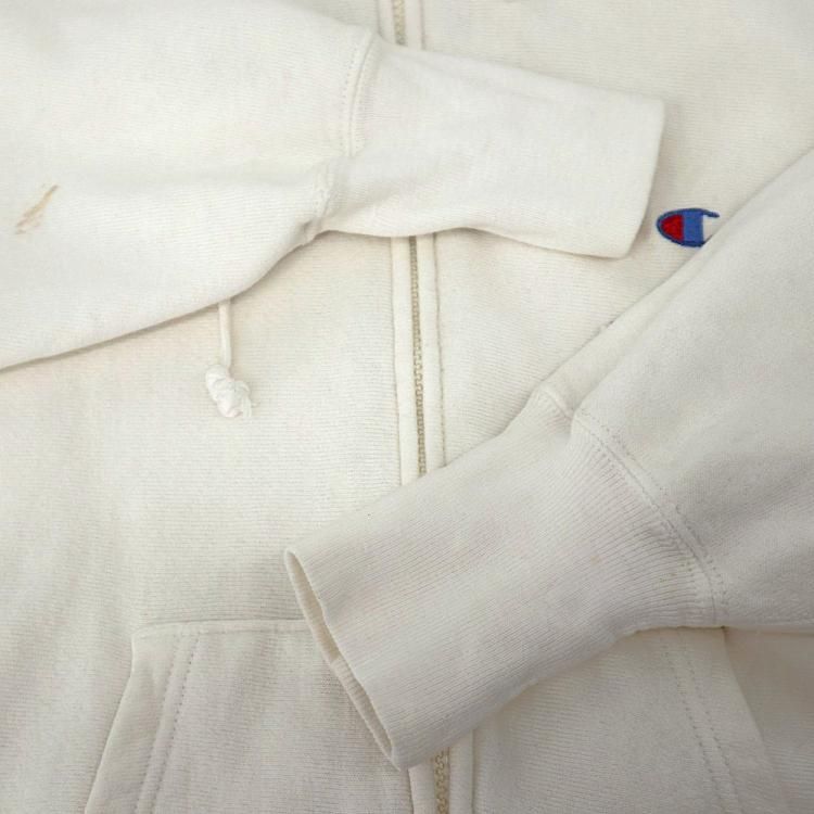 古着 希少モデル 90’s USA製 Champion チャンピオン REVERSE WEAVE 刺繍タグ 無地 ホワイト 旧縫製 フルジップ スウェットパーカー / メンズM