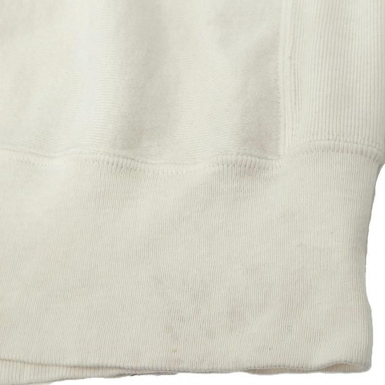 コメント:90年代Champion社製リバースウィーブのスエットフーディーです。 こちらは希少なフルジップモデル。 フルジップモデルの多くは、サイドパネルが50sに見られた2本針での縫製になっている謎仕様。 こういったディテールは人に話したくなりますね。