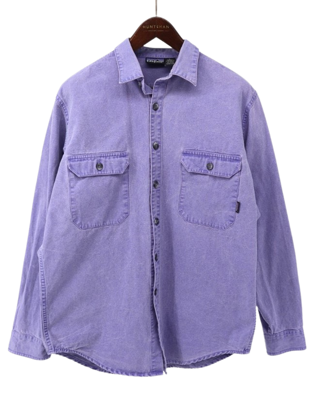 コメント:93年製 パタゴニア の長袖シャツです。 パープル系のハリのあるコットンキャンバス地で、肩や脇に腕がダブルステッチになった丈夫な造り。 パッカリングの出た雰囲気の良いシャツになります。 この年代も今後は価格が上昇してもおかしくはありません。 今が狙い目だと思います。